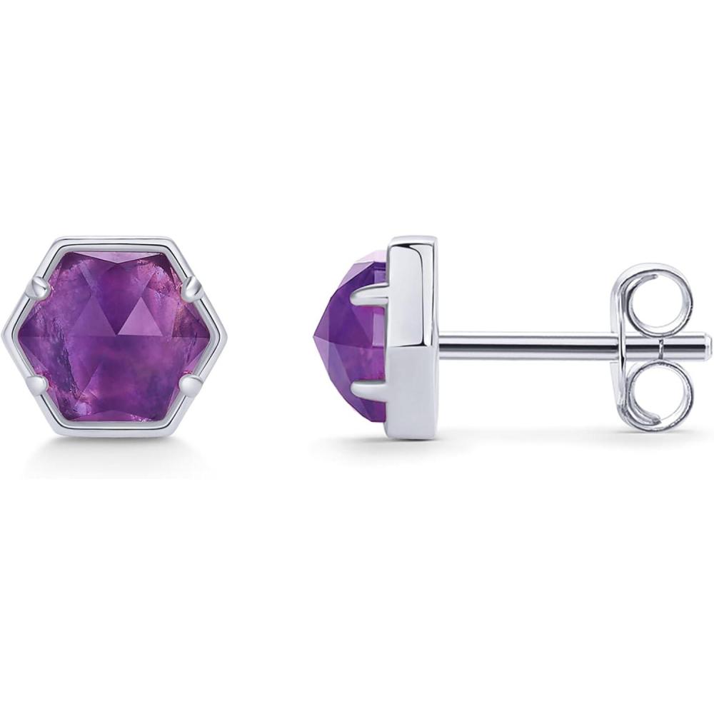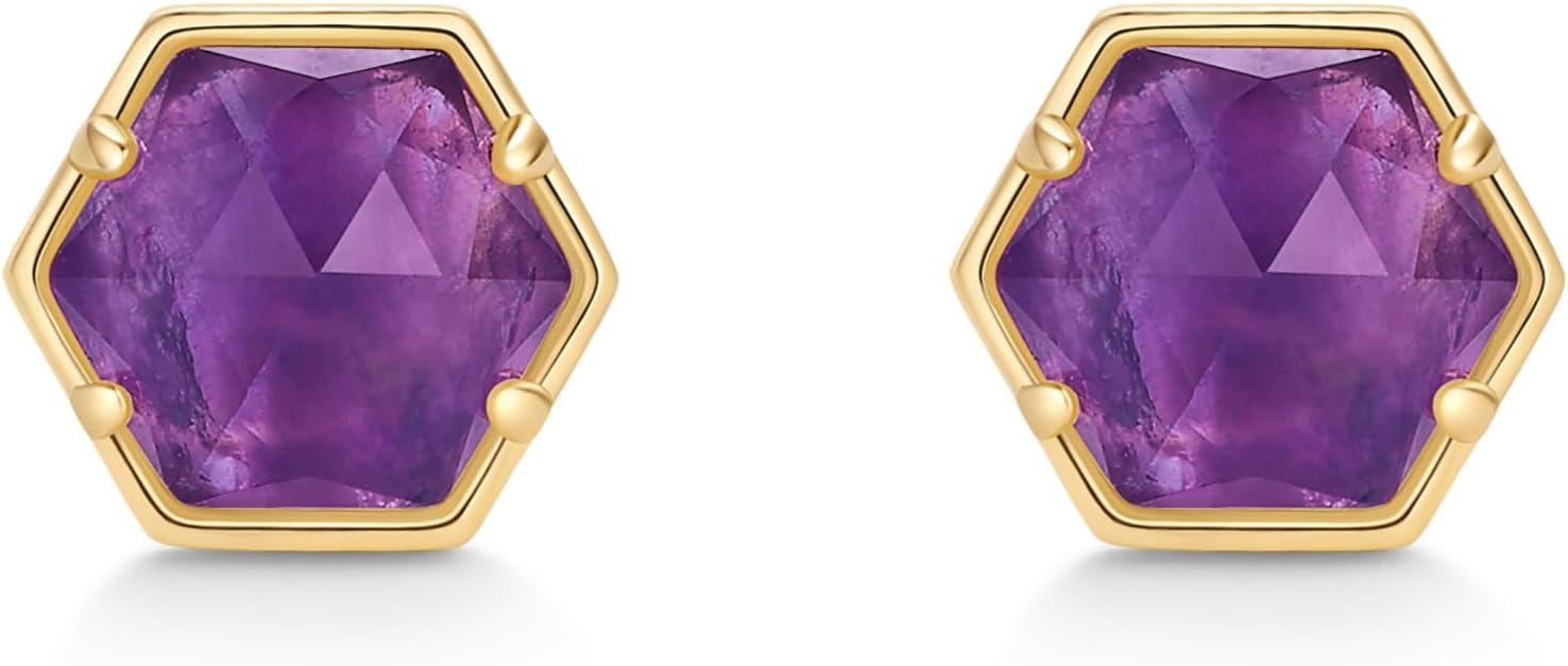 PAVOI 14K Gold Plated Hexagon Gemstone Stud Earrings for Women | Natural Birthstone Earring Pair(Amethyst)