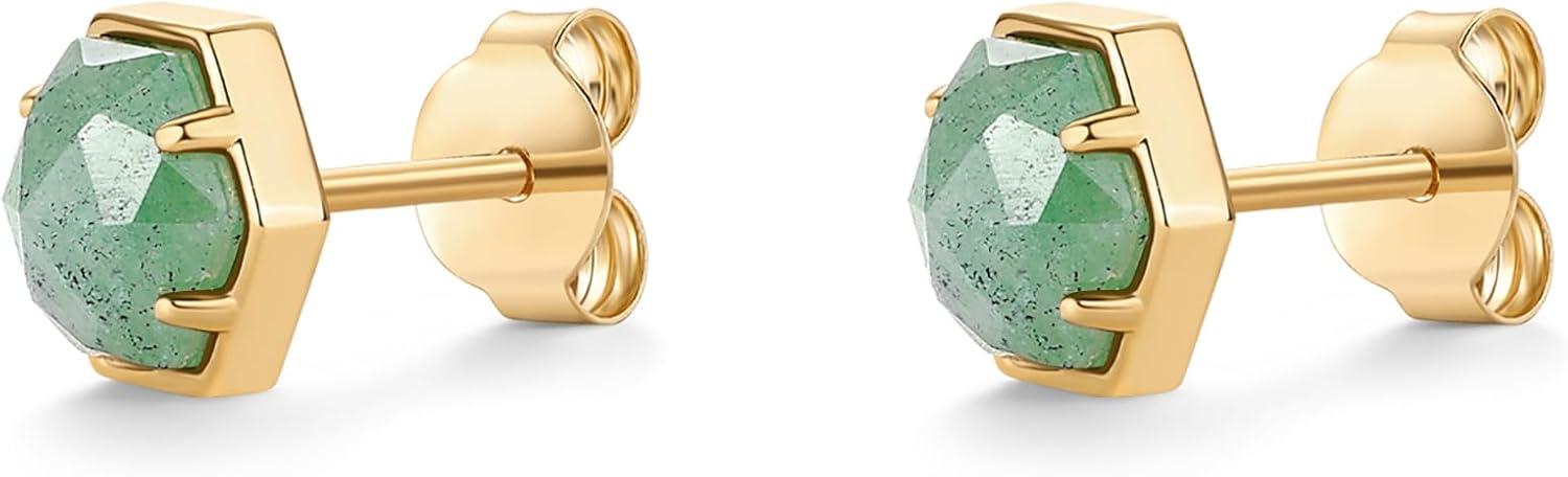 PAVOI 14K Gold Plated Hexagon Gemstone Stud Earrings for Women | Natural Birthstone Earring Pair(Green Fluorite)