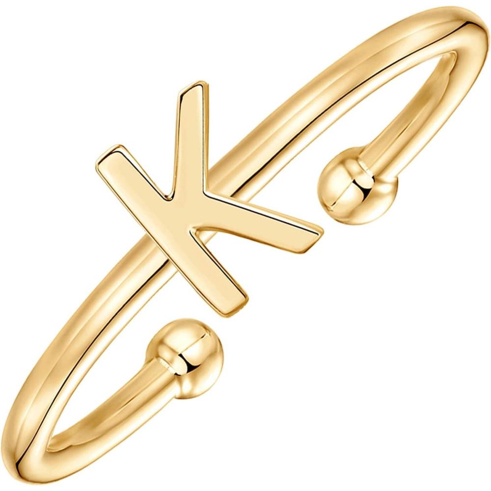 PAVOI 14K Gold Plated Initial Letter Adjustable Ring for Women – Thin Initial Band – Dainty Fashion Jewelry Gifts(- K)