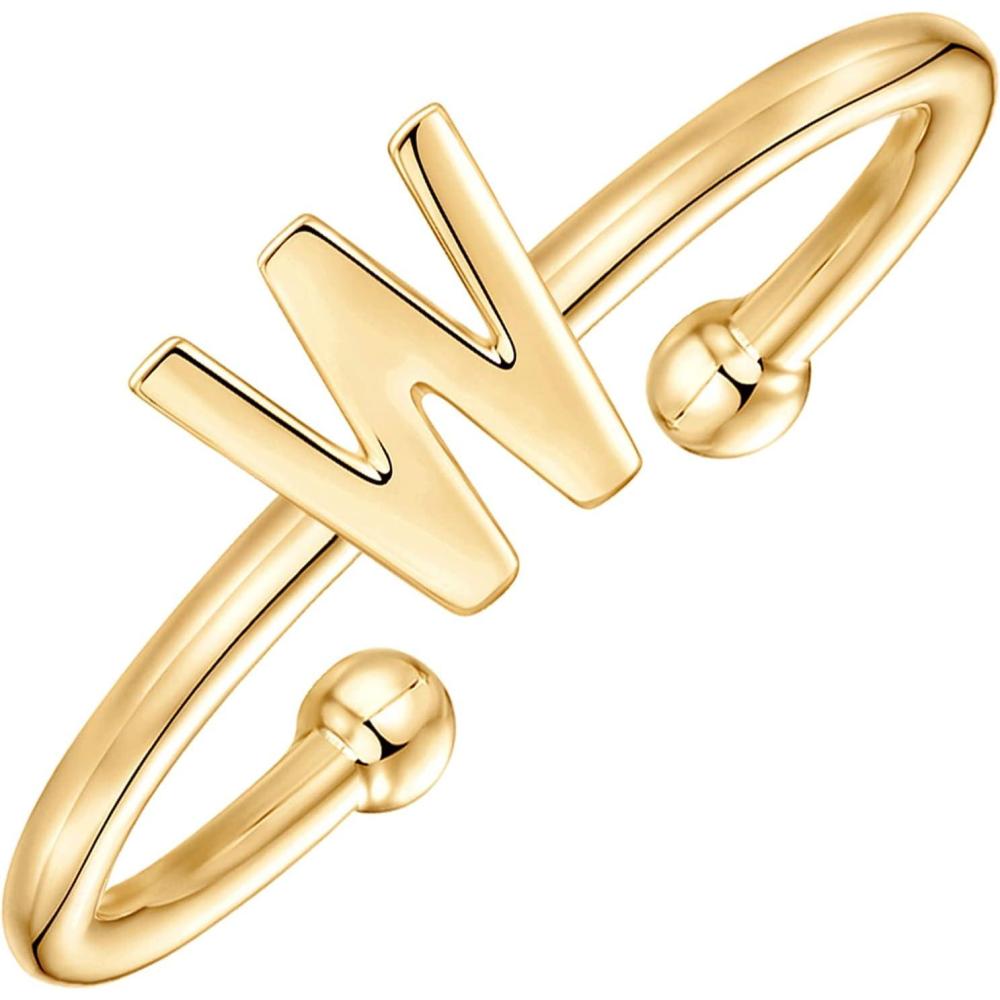 PAVOI 14K Gold Plated Initial Letter Adjustable Ring for Women – Thin Initial Band – Dainty Fashion Jewelry Gifts(- W)