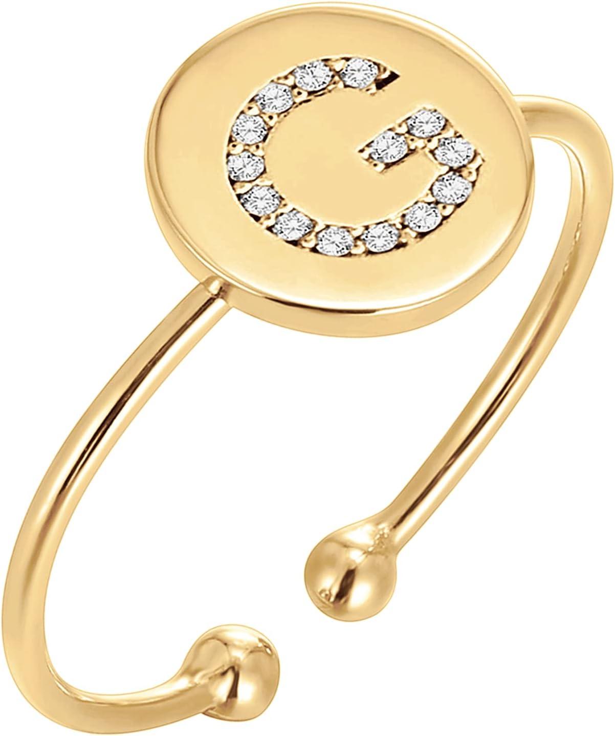 PAVOI 14K Gold Plated Initial Ring Stackable Rings for Women | Fashion Rings(- G)
