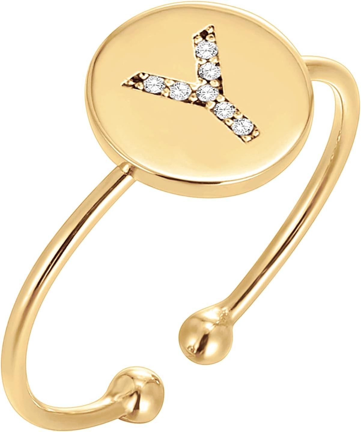 PAVOI 14K Gold Plated Initial Ring Stackable Rings for Women | Fashion Rings(- Y)