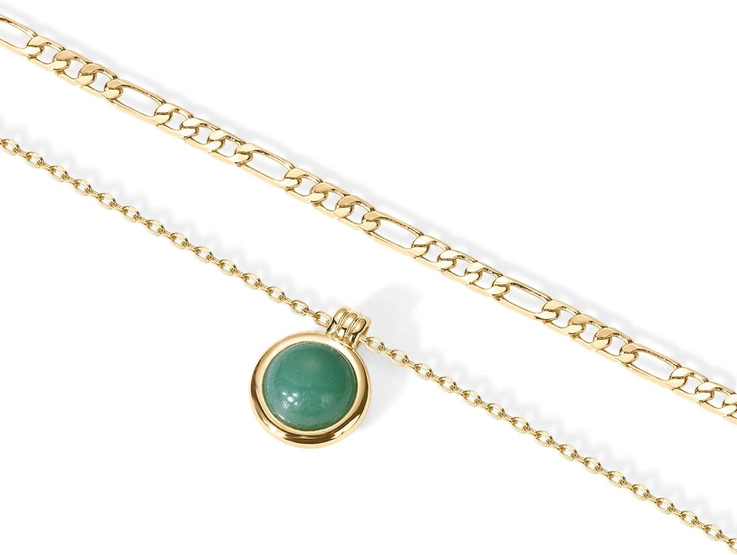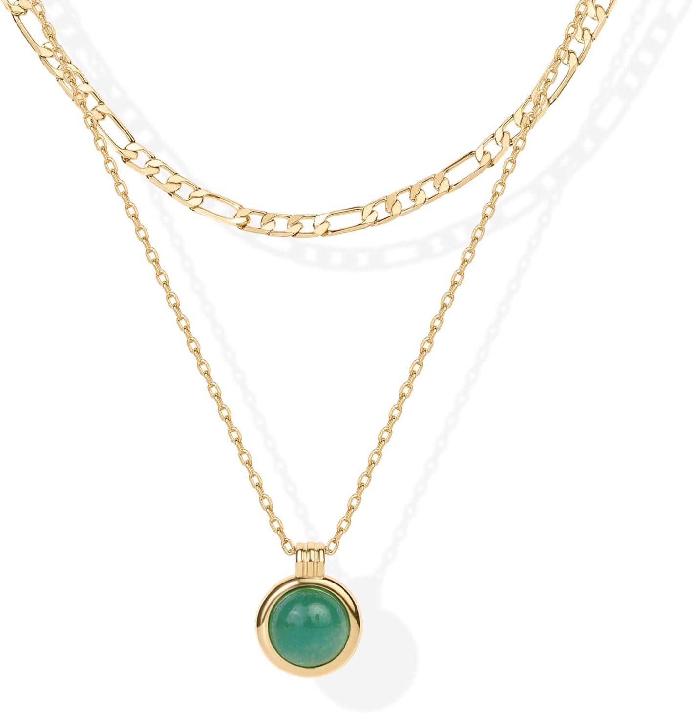 PAVOI 14K Gold Plated Layered Necklaces for Women | Gemstone Pendant Figaro Chain Necklace | Carnelian, Green Aventurine, Malachite Layering Necklace(Yellow Gold)