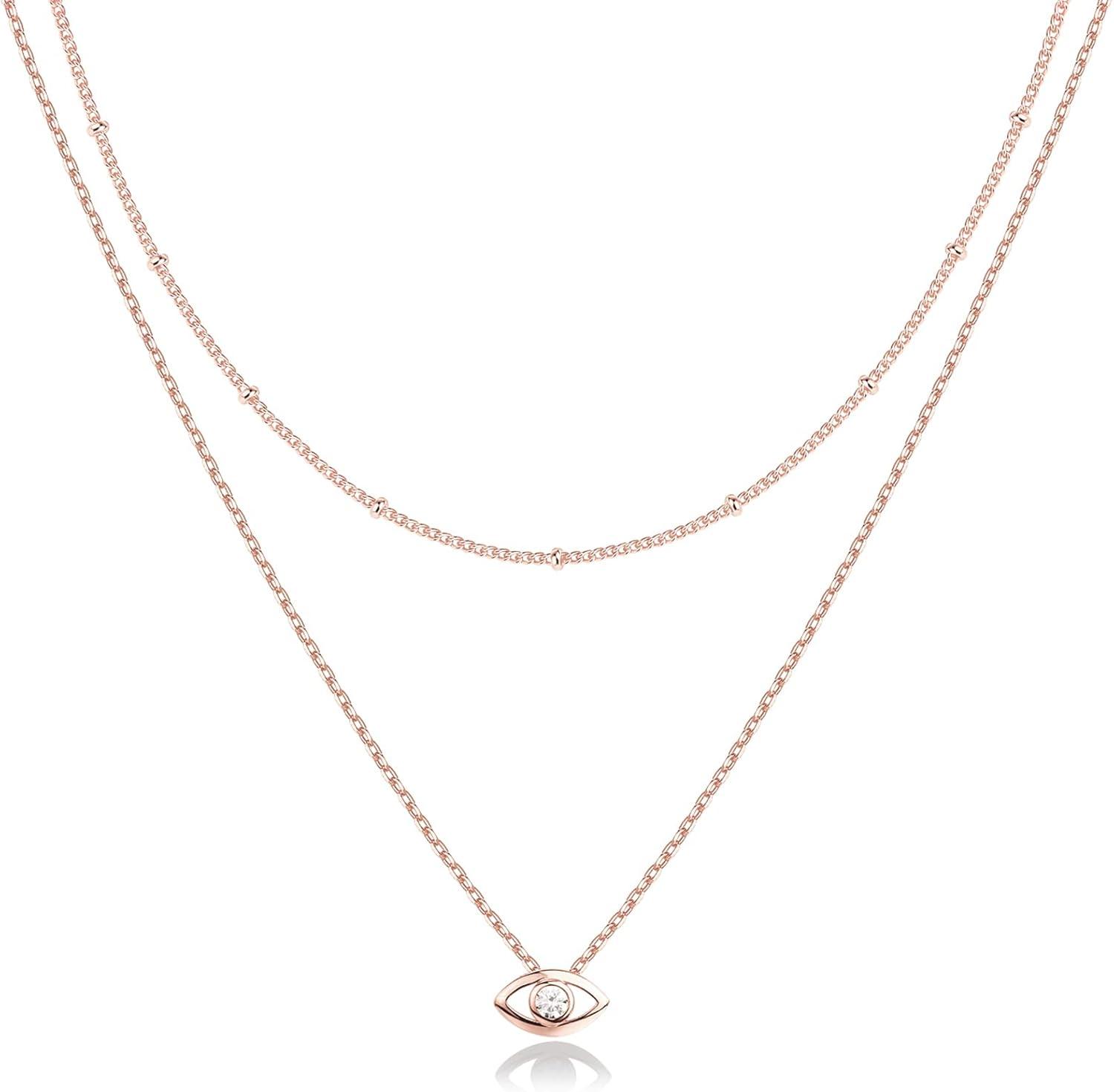 PAVOI 14K Gold Plated Layering Necklaces | Stylish Minimalist Design Pendant Necklaces | Butterfly, Heart, Lock, Evil Eye, Coin, Lightning Bolt, Circle, Cross Pendants for Women(Rose Gold)