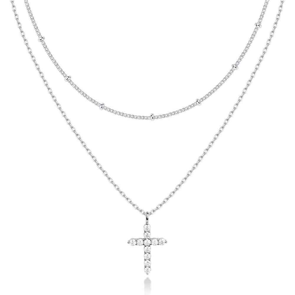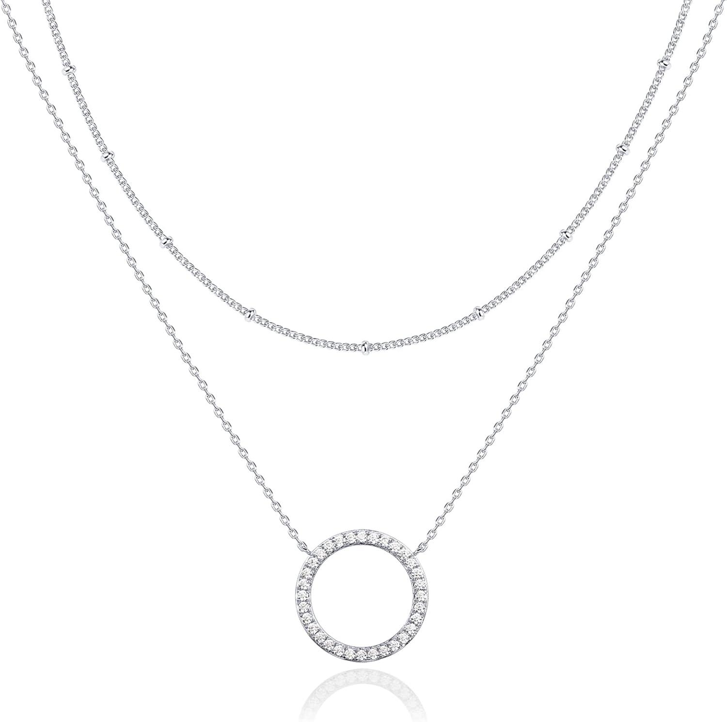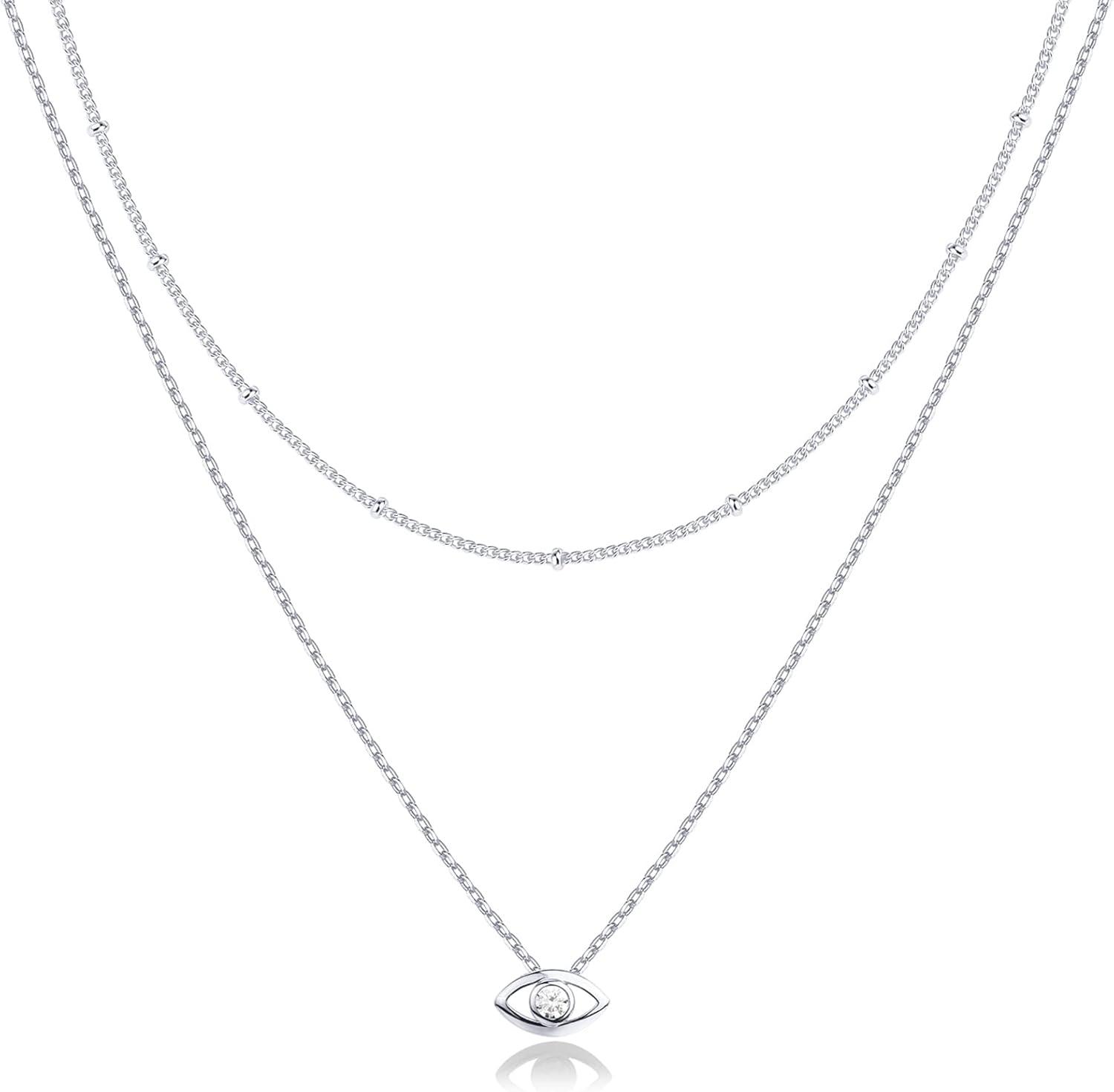 PAVOI 14K Gold Plated Layering Necklaces | Stylish Minimalist Design Pendant Necklaces | Butterfly, Heart, Lock, Evil Eye, Coin, Lightning Bolt, Circle, Cross Pendants for Women(White Gold)