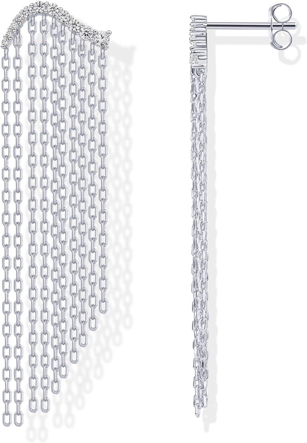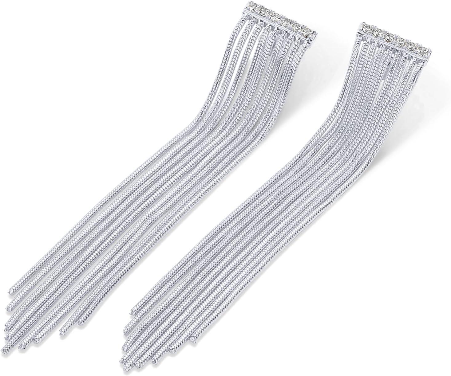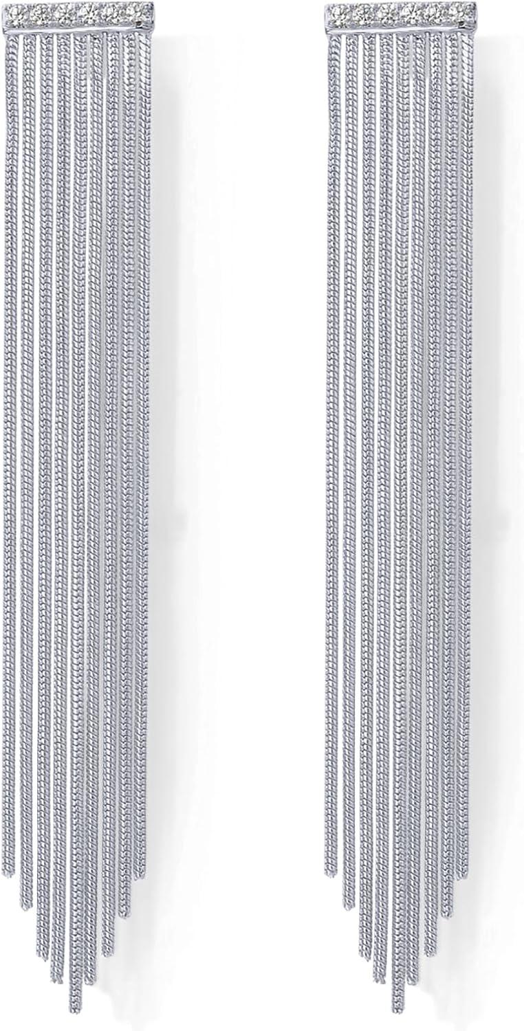 PAVOI 14K Gold Plated Long Tassel Dangle Earrings for Women – 925 Sterling Silver Posts Elegant Rhinestone Chain Chandelier Drop Earrings – Statement Jewelry(White Gold)