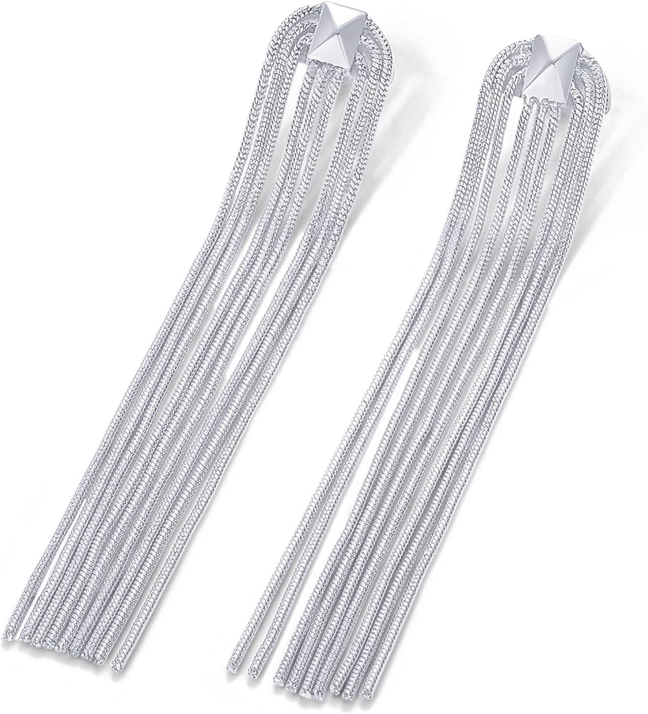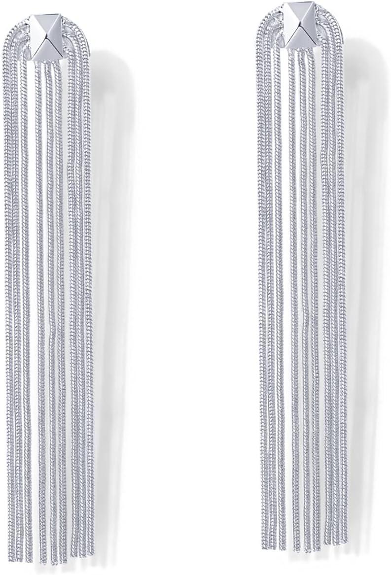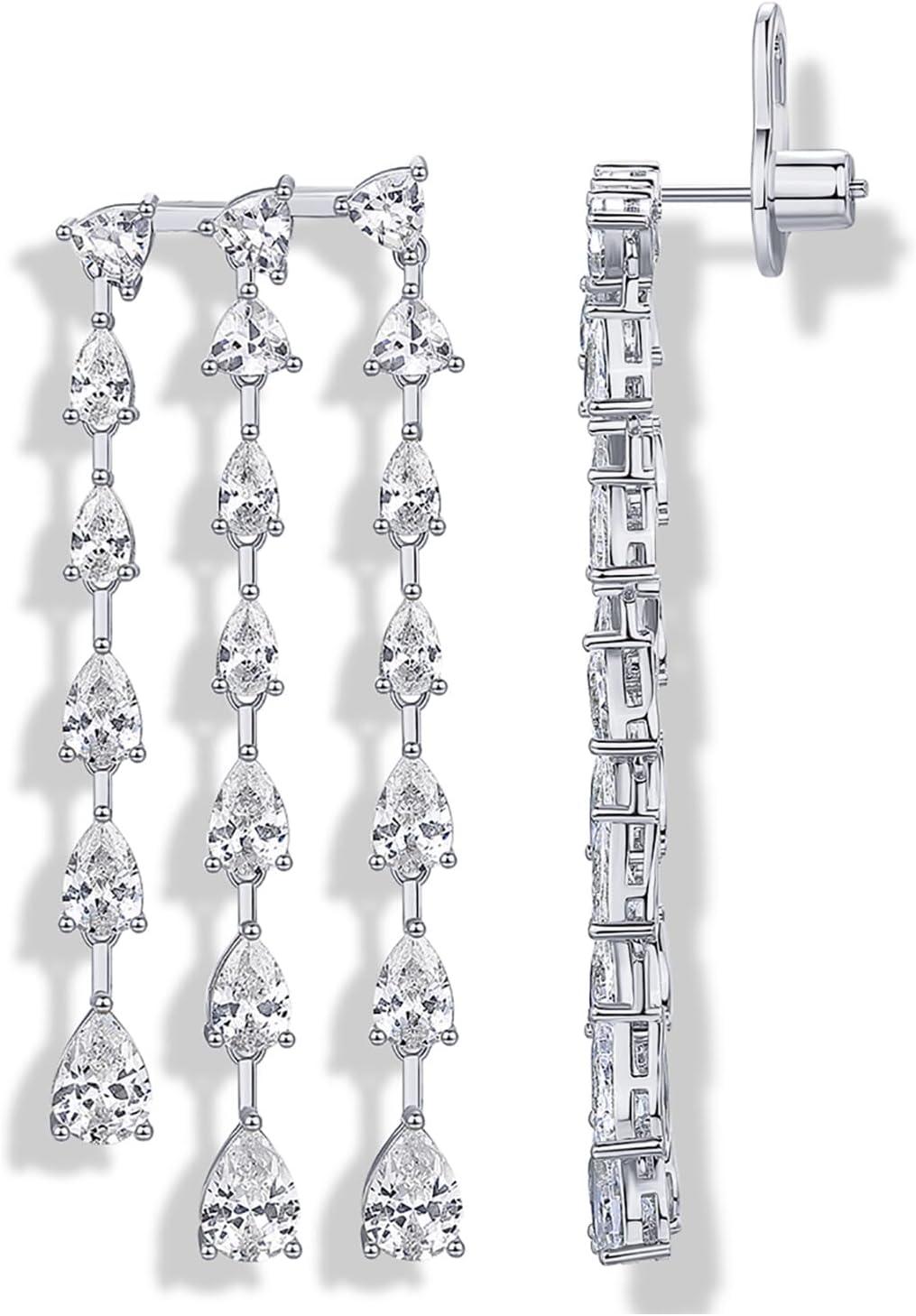 PAVOI 14K Gold Plated Long Tassel Dangle Earrings for Women – 925 Sterling Silver Posts Elegant Rhinestone Chain Chandelier Drop Earrings – Statement Jewelry(White Gold)