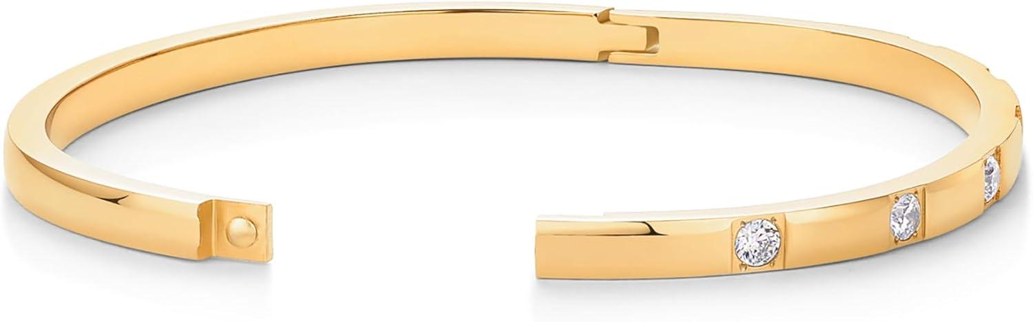 PAVOI 14K Gold Plated Love Bangle Bracelets for Women | Waterproof Stainless Steel Cubic Zirconia Hinged Bracelet Dupe(Yellow Gold)