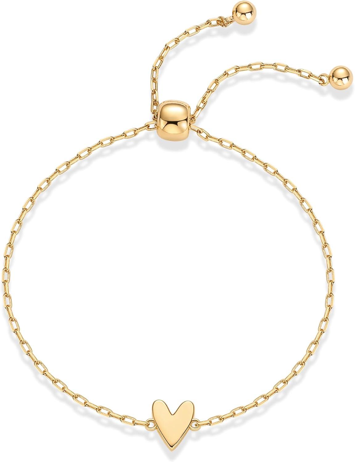 PAVOI 14K Gold Plated Matching Heart Charms Solitaire Bracelet Set for Women | Adjustable Love Friendship Two Bracelet Pack(2-Piece Set)