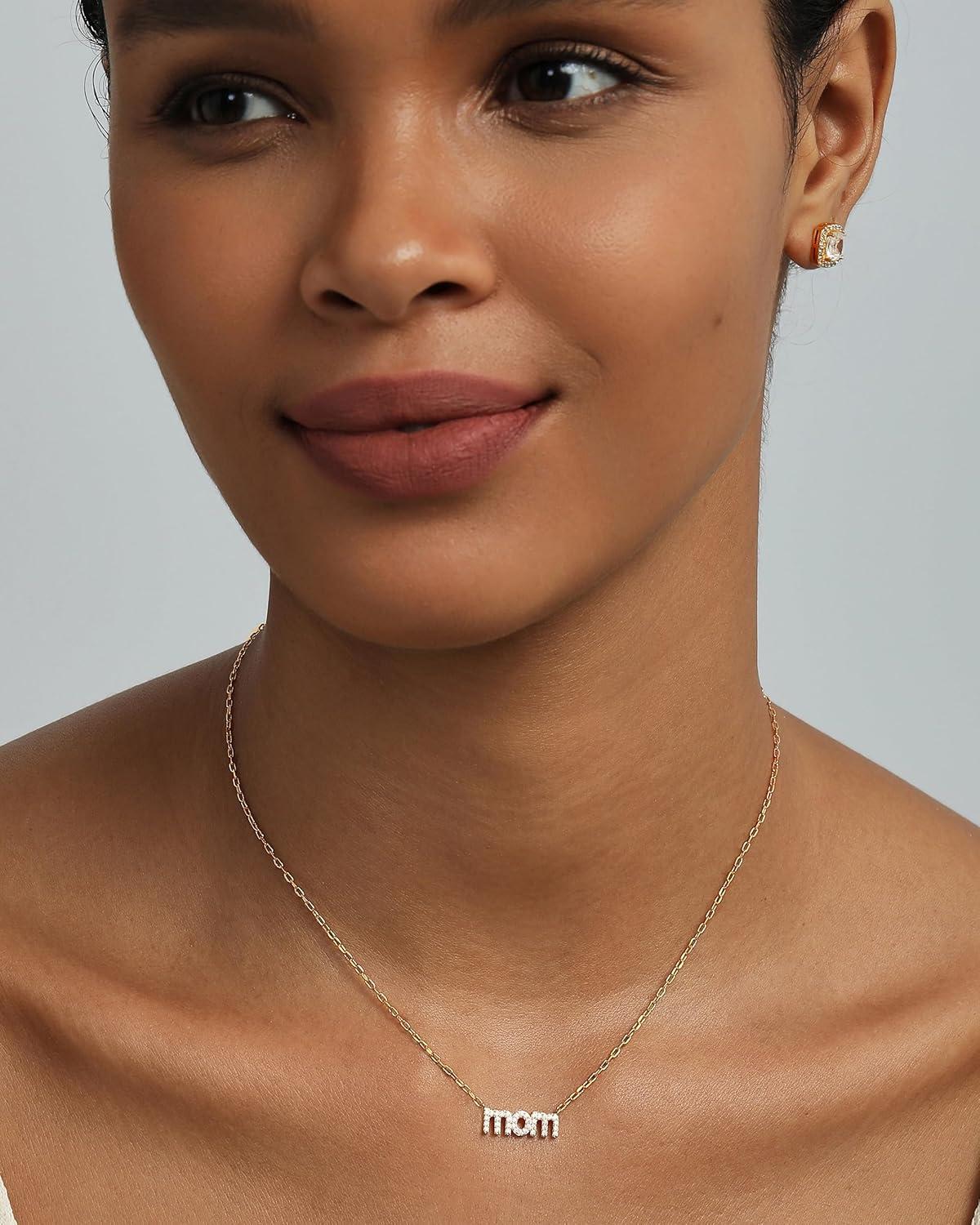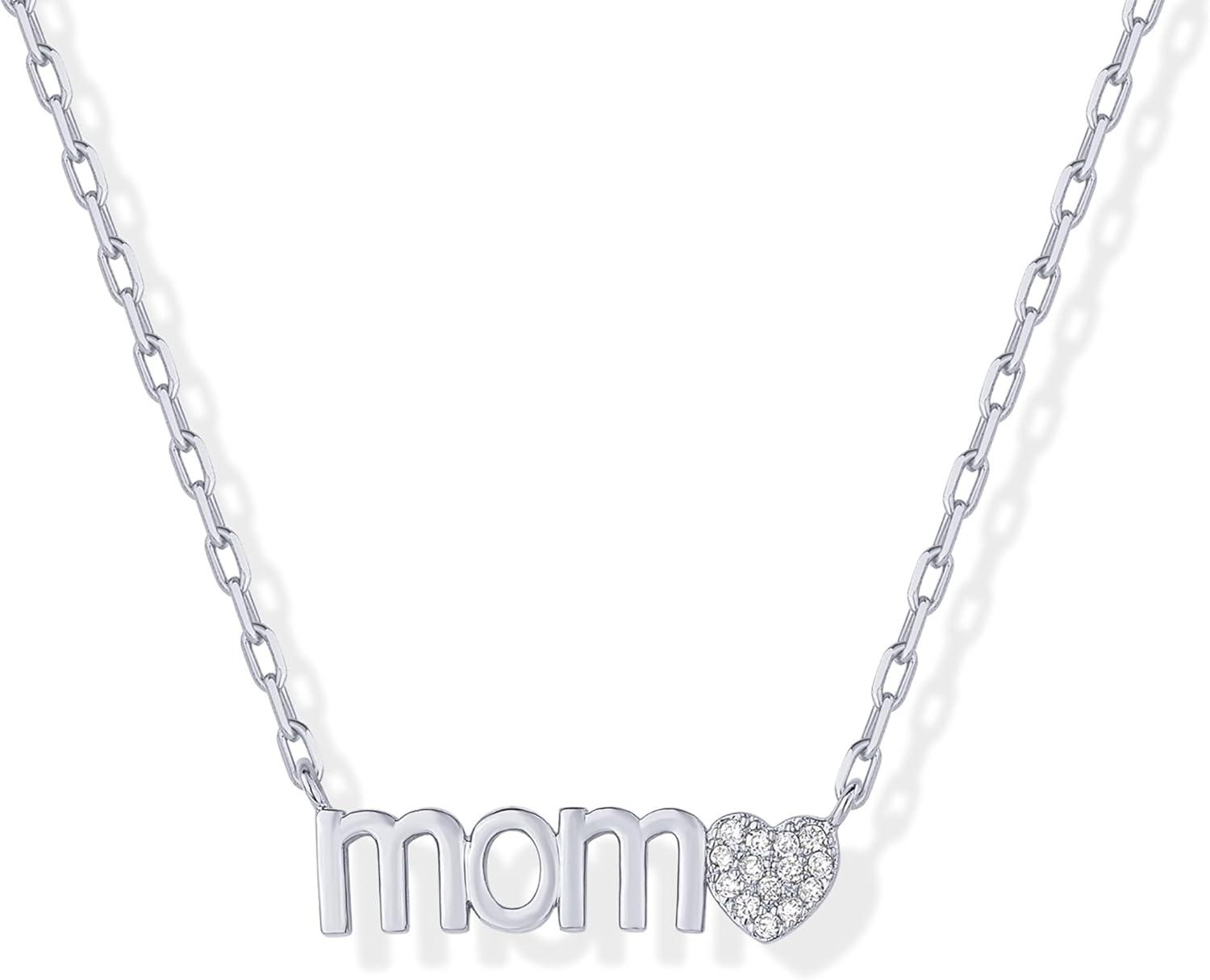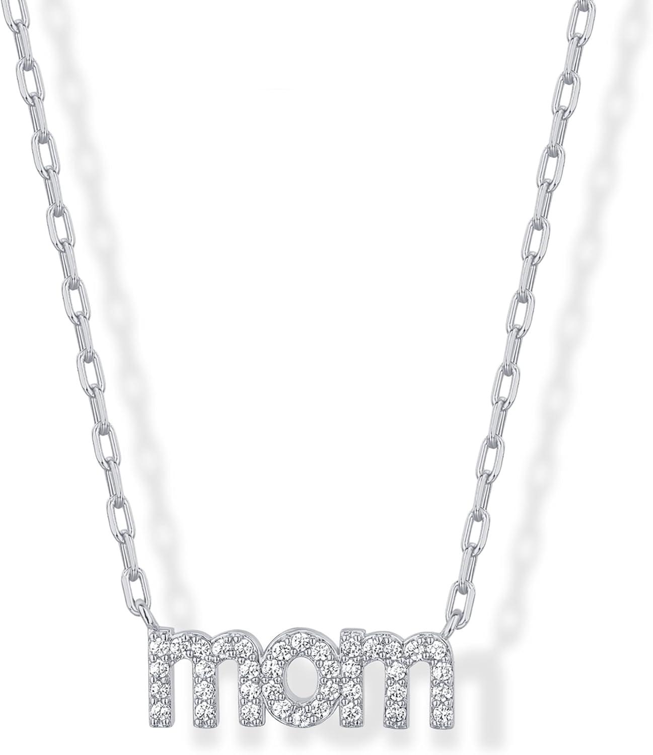 PAVOI 14K Gold Plated Mom Necklace for Women – Cubic Zirconia Mama Necklace Gold Jewelry Gifts for Mothers Day – Dainty Pendant New Mom Jewelry(White Gold)