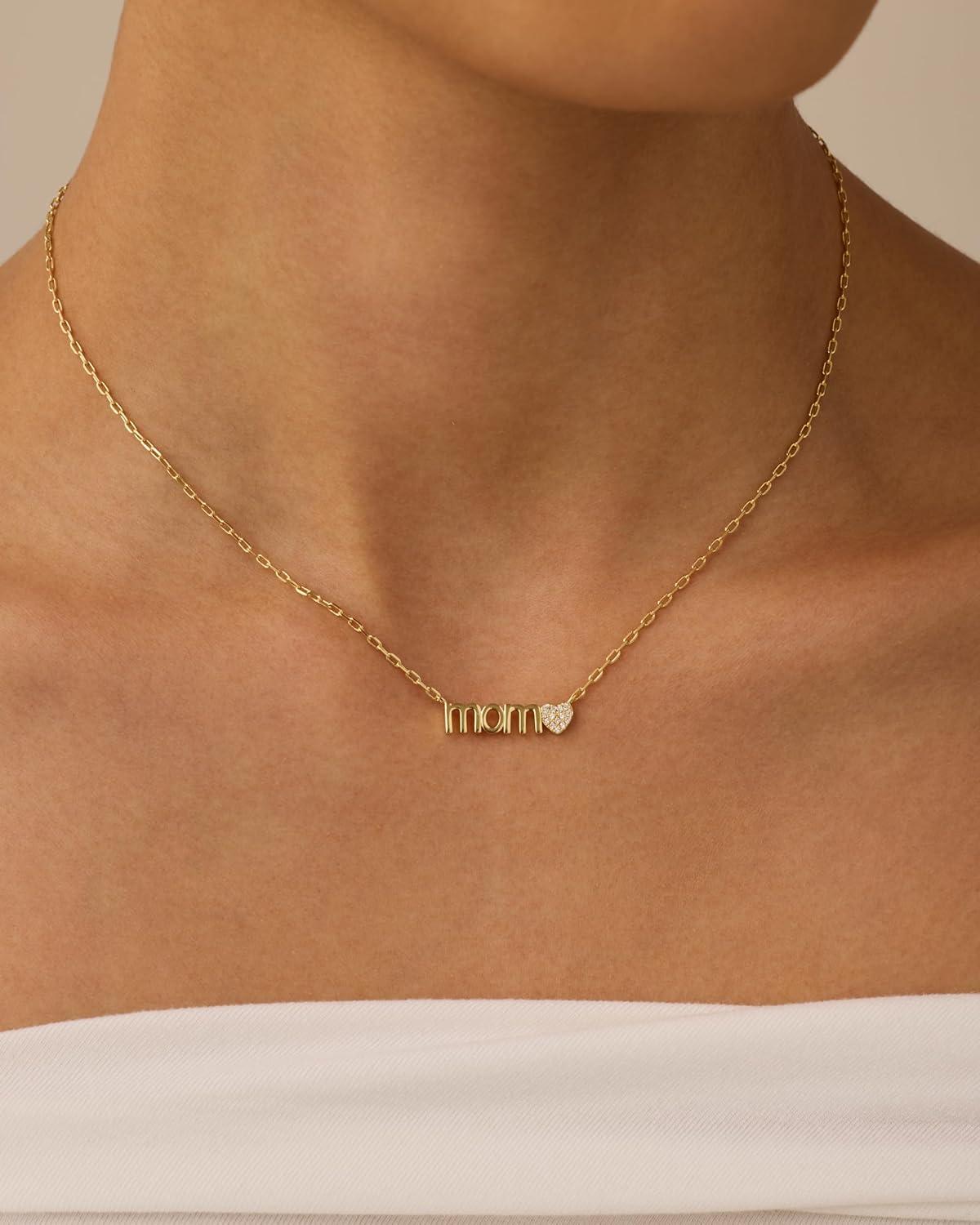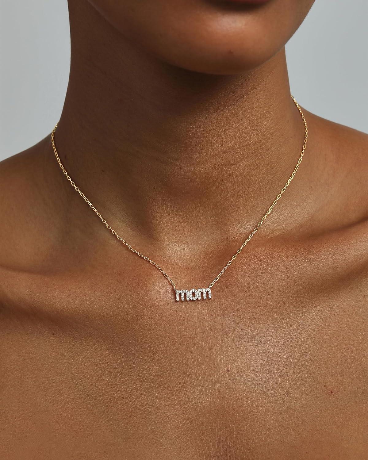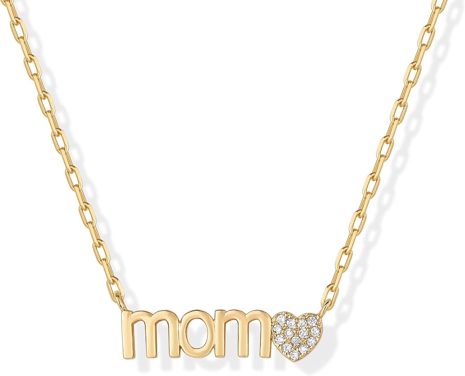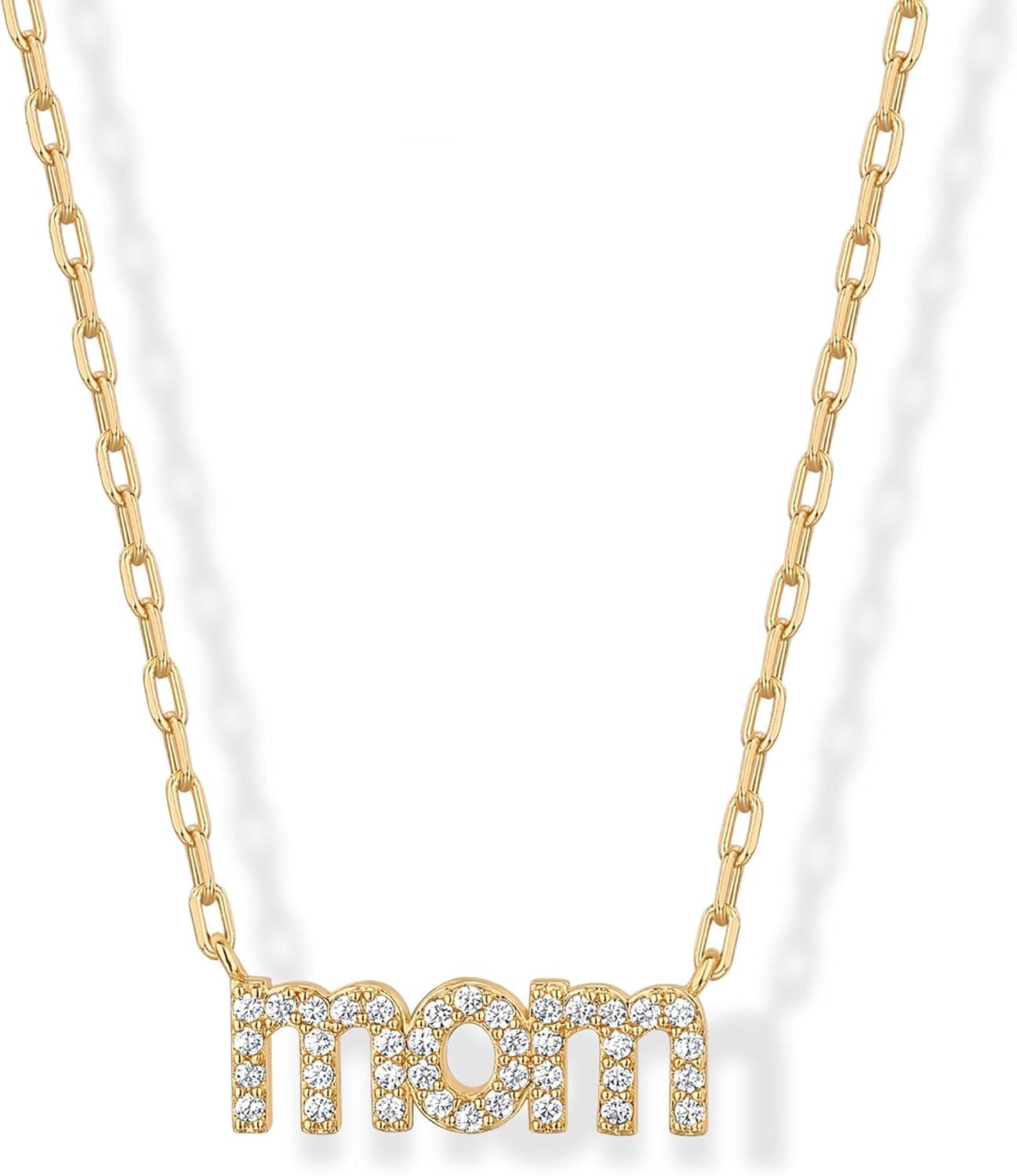 PAVOI 14K Gold Plated Mom Necklace for Women – Cubic Zirconia Mama Necklace Gold Jewelry Gifts for Mothers Day – Dainty Pendant New Mom Jewelry(Yellow Gold)