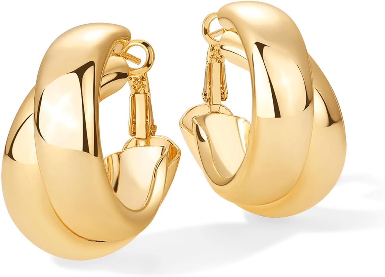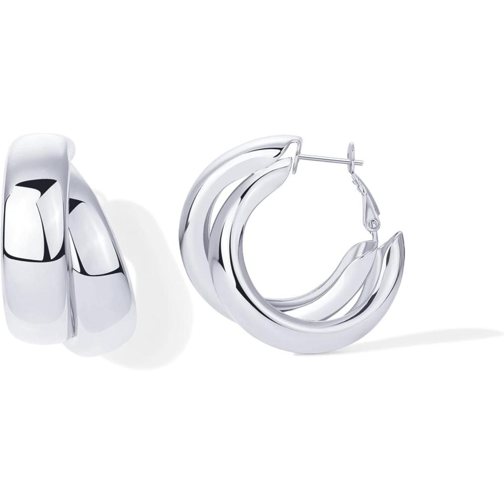 PAVOI 14K Gold Plated Multi Huggie Hoop Earrings for Women – 925 Sterling Silver Posts Triple Split Hoop Gold Earrings for Women – Trendy Fashion Jewelry(Chunky)