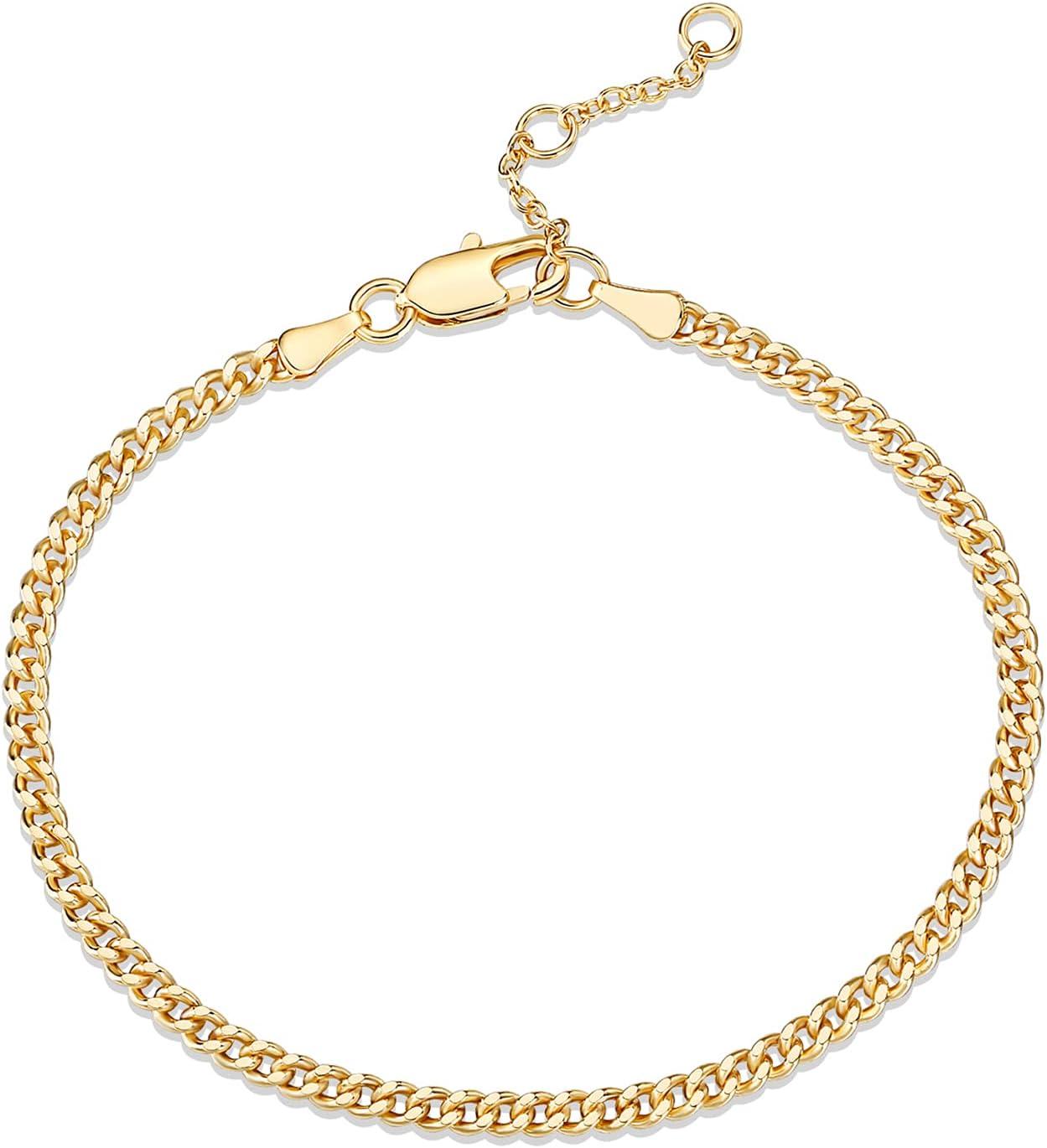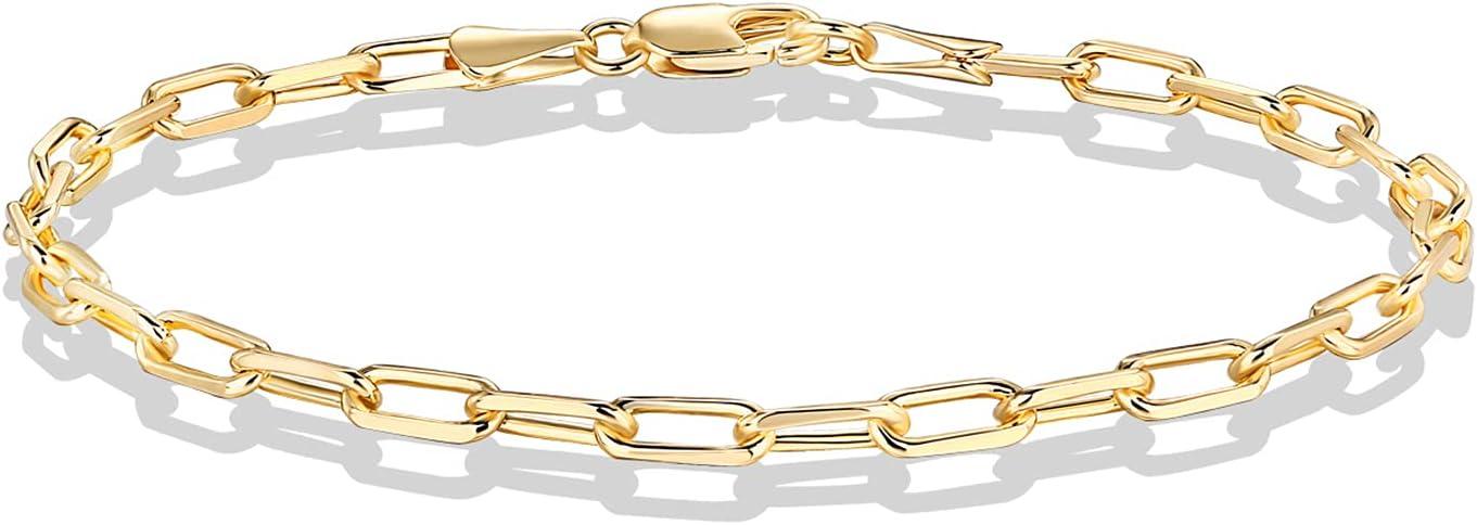 PAVOI 14K Gold Plated Paperclip/Curb/Figaro Chain Adjustable Bracelet for Women(Yellow Gold)