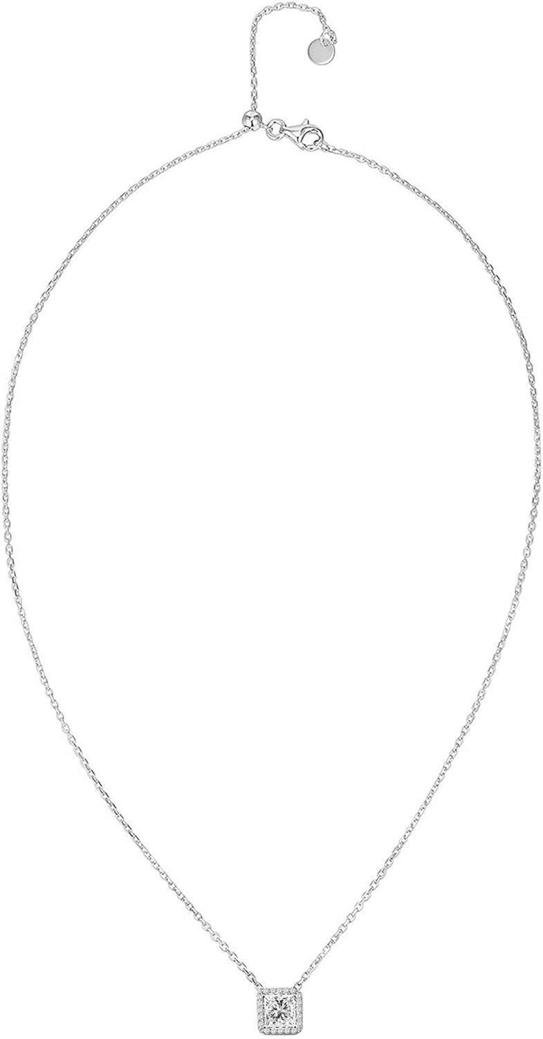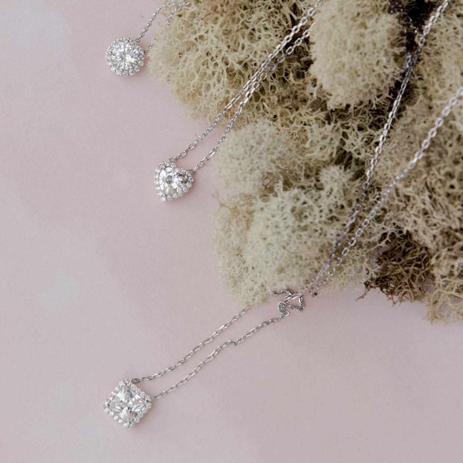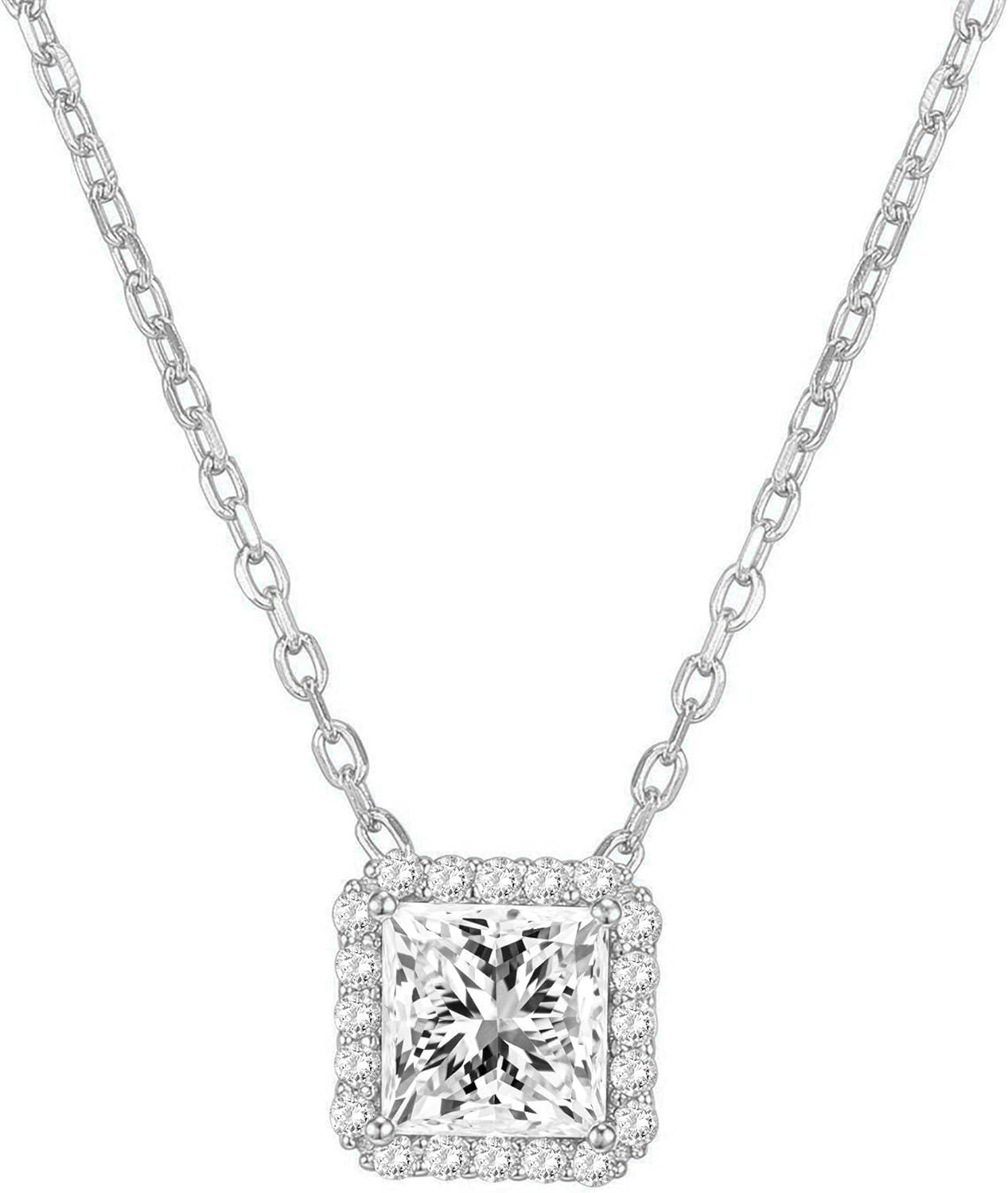 PAVOI 14K Gold Plated Post Faux Diamond Round Solitaire Pendant Halo Necklace | Gold Necklace for Women | Slider Adjustable(White Gold)