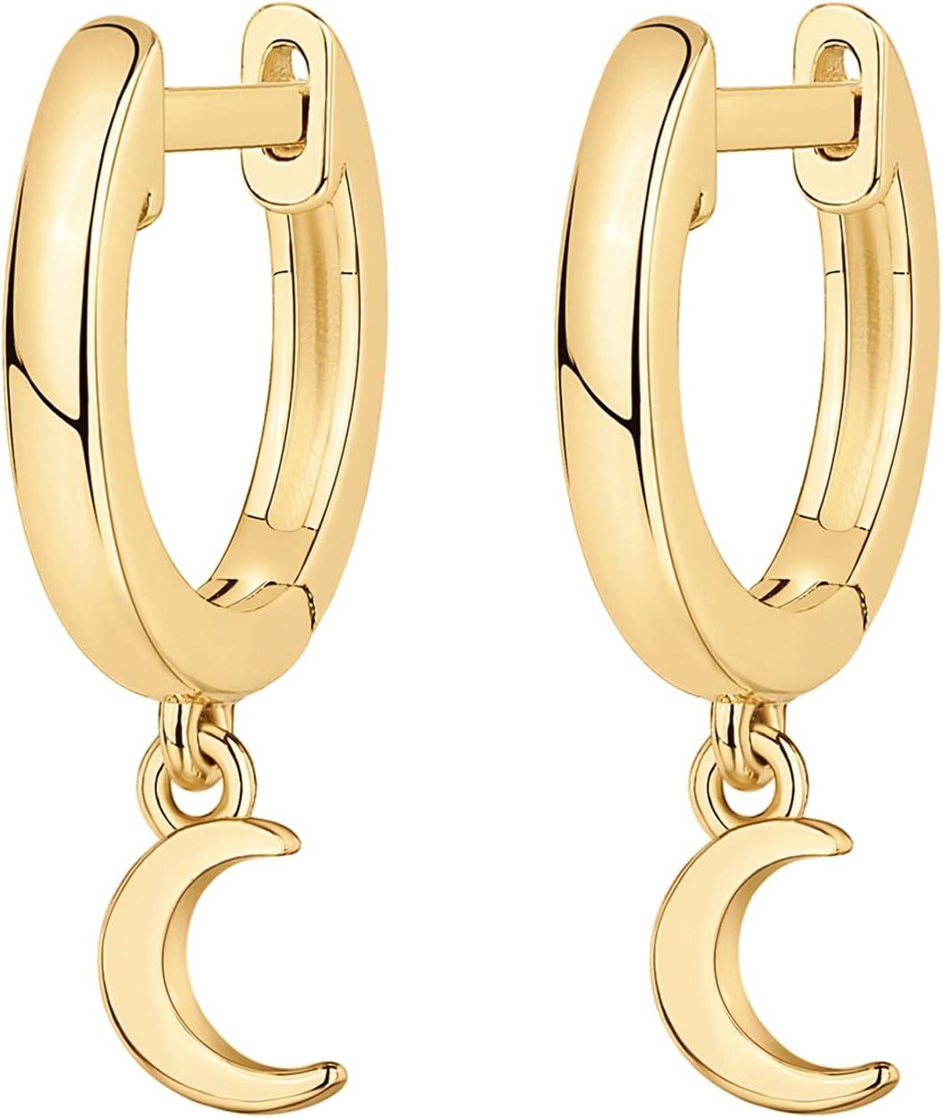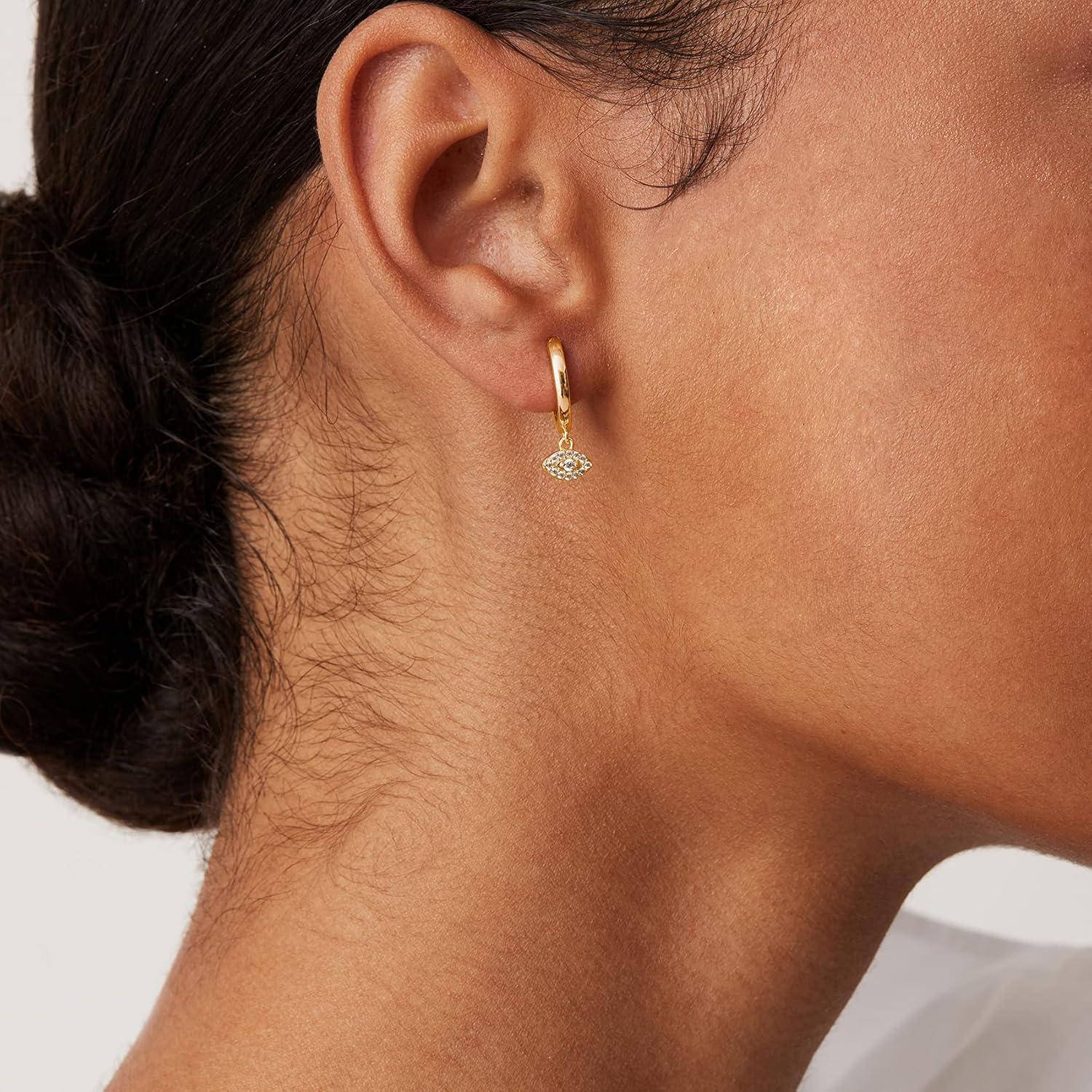 PAVOI 14K Gold Plated S925 Sterling Silver Post Lightweight Drop/Dangle Huggie Earrings for Women | Religious Ornament: Cross, Evil Eye, Clover, Celtic | Dainty Earrings for Women(Vermeil – Yellow)