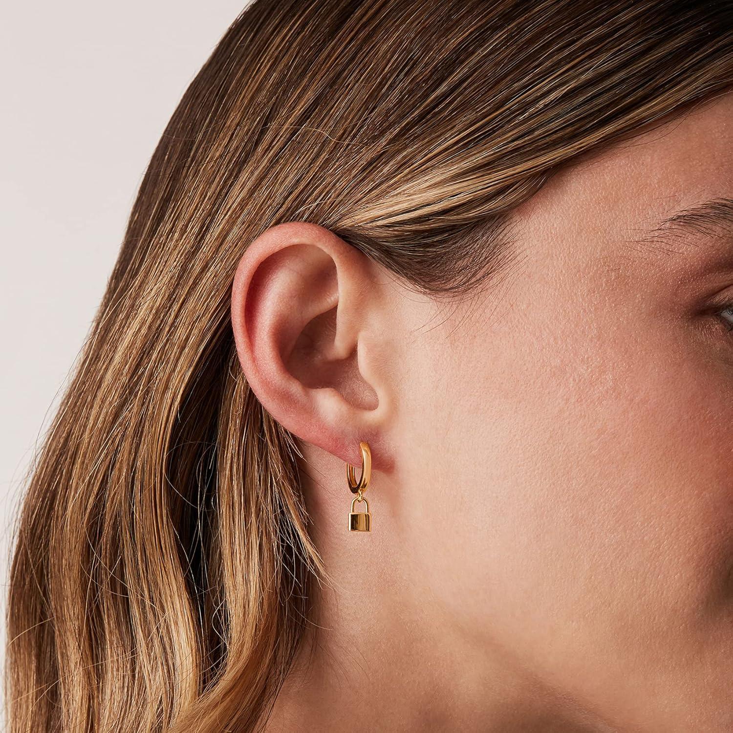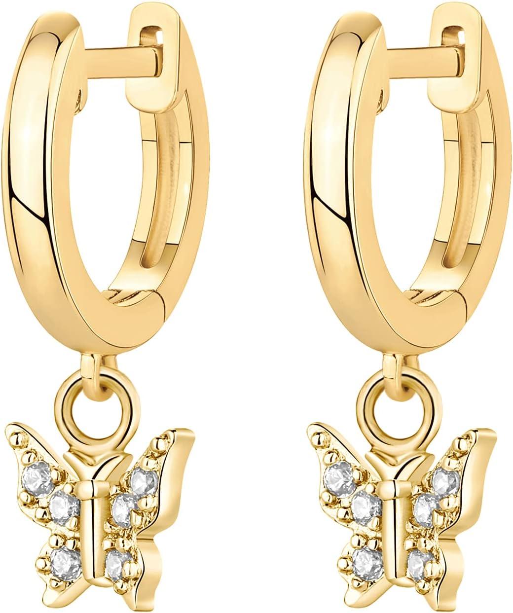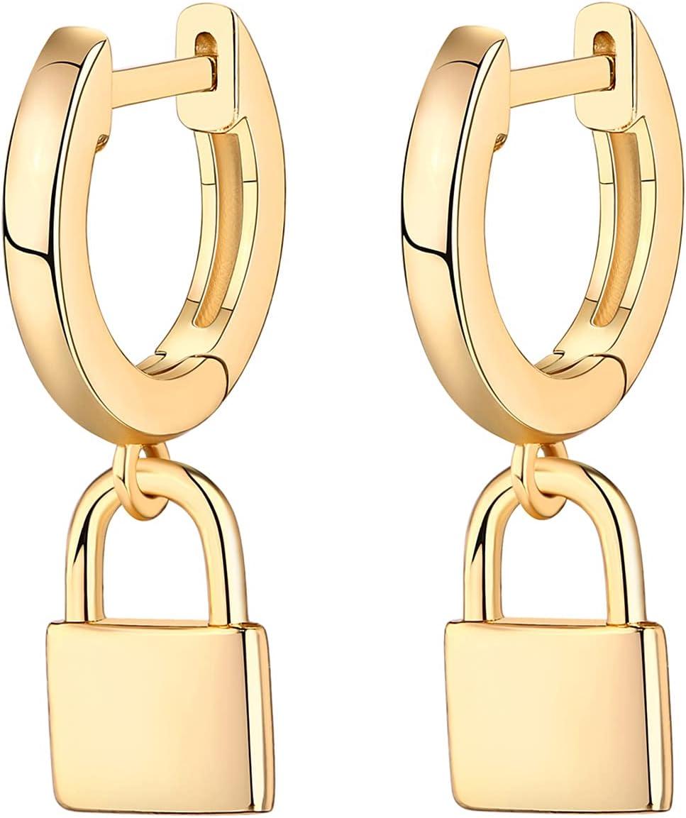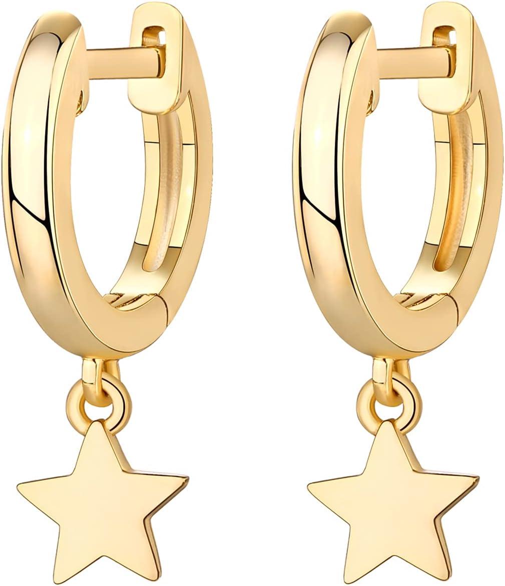 PAVOI 14K Gold Plated S925 Sterling Silver Post Lightweight Drop/Dangle Huggie Earrings for Women | Star, Lock, Butterfly, Moon, Lightning | Dainty Earrings(Yellow Gold)