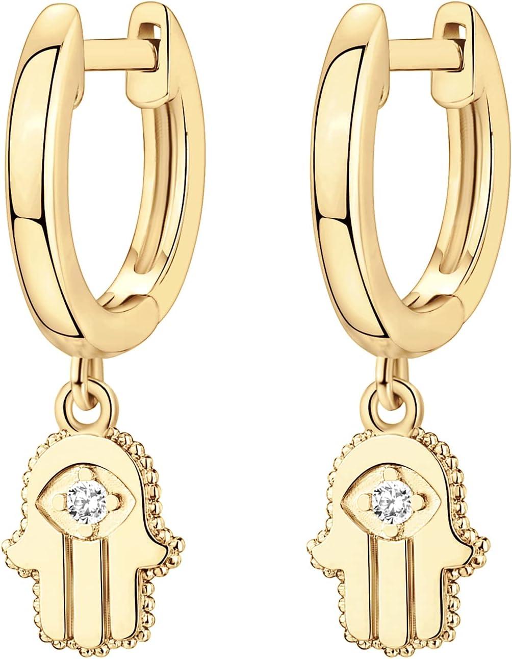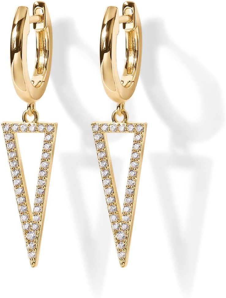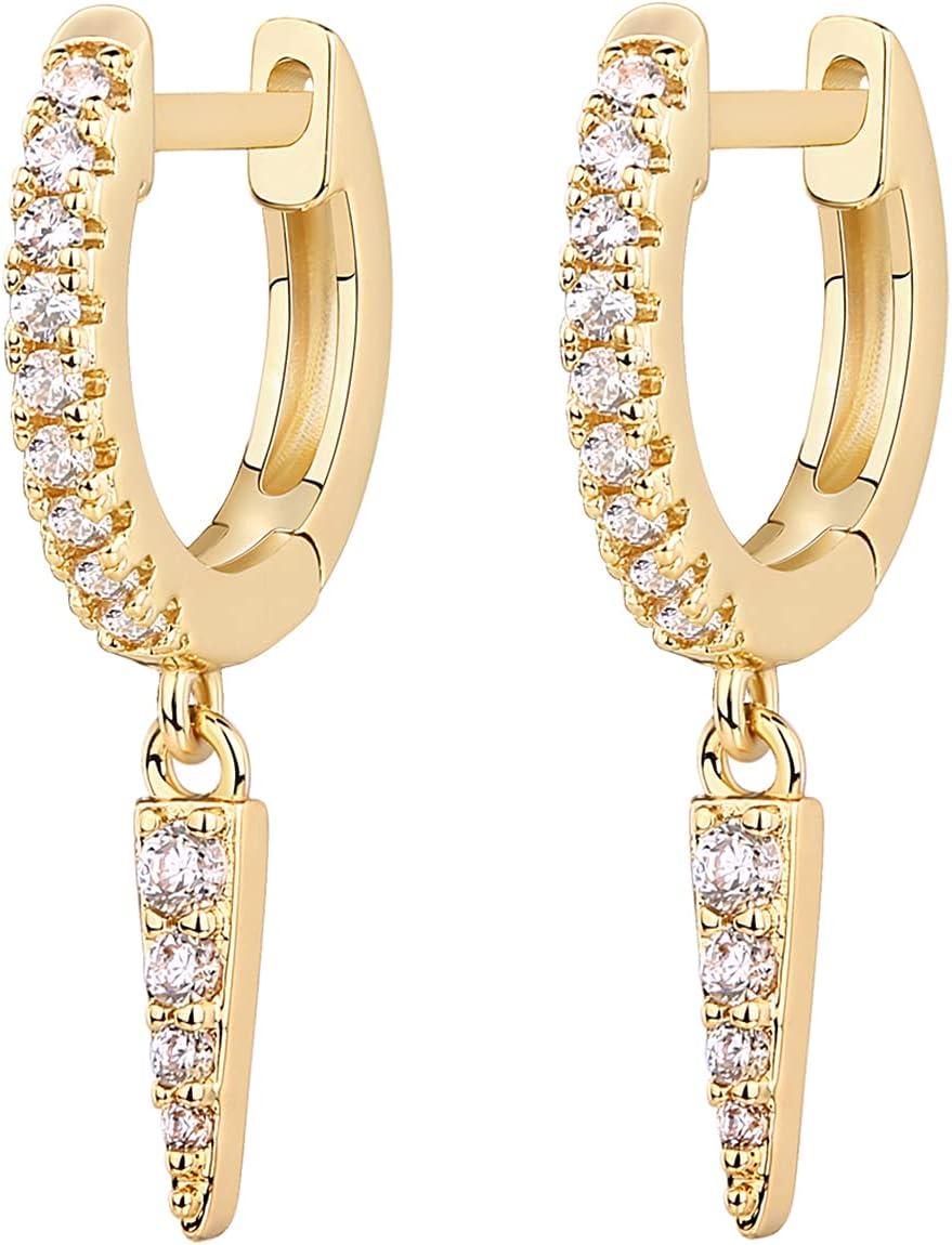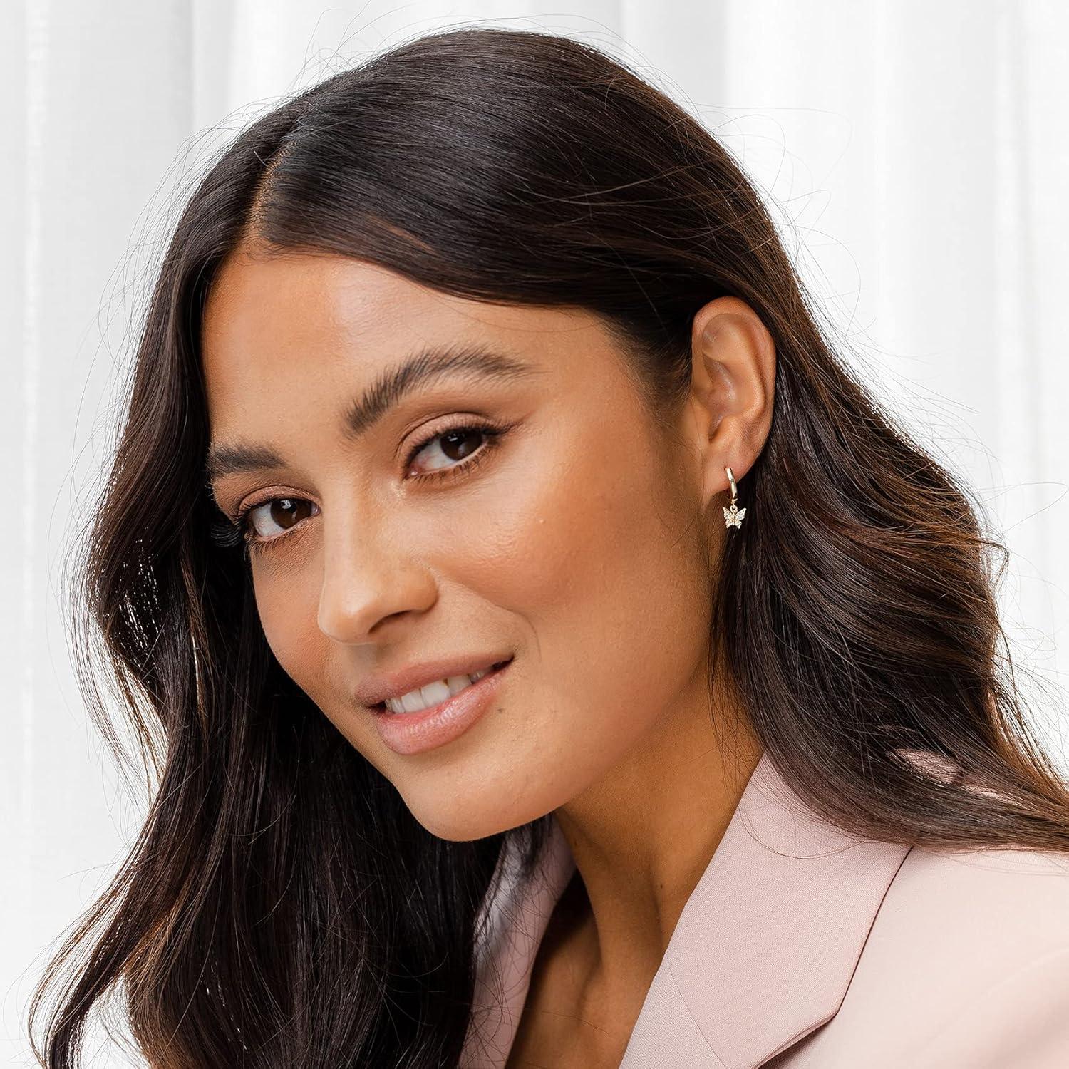 PAVOI 14K Gold Plated S925 Sterling Silver Post Lightweight Drop/Dangle Huggie Earrings for Women | Star, Lock, Butterfly, Moon, Lightning | Dainty Earrings(Yellow Gold)