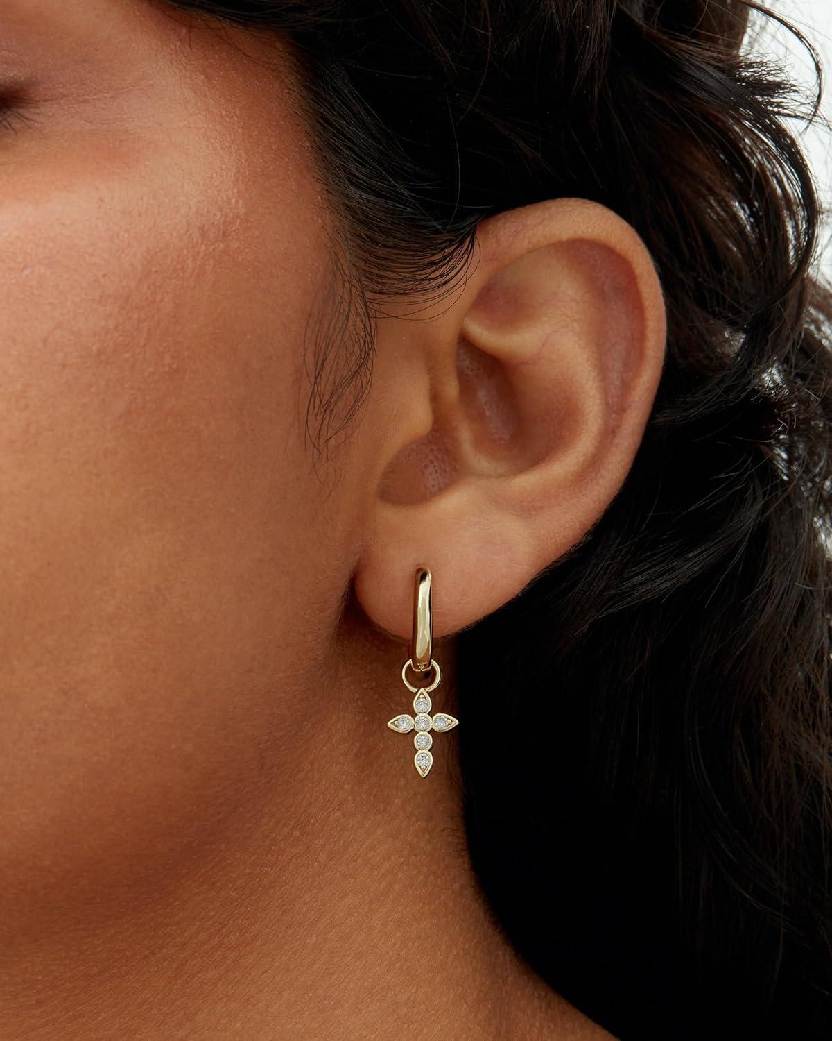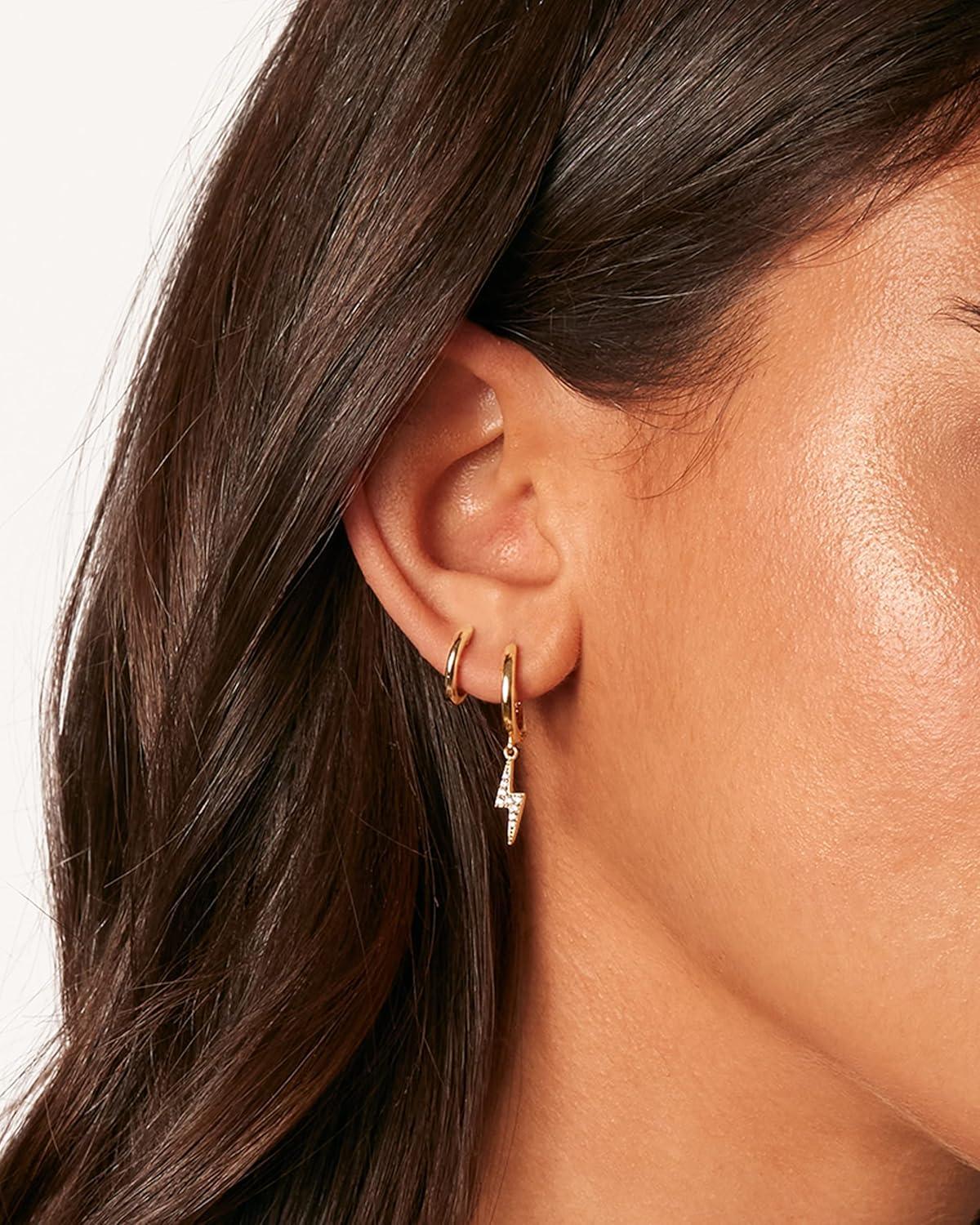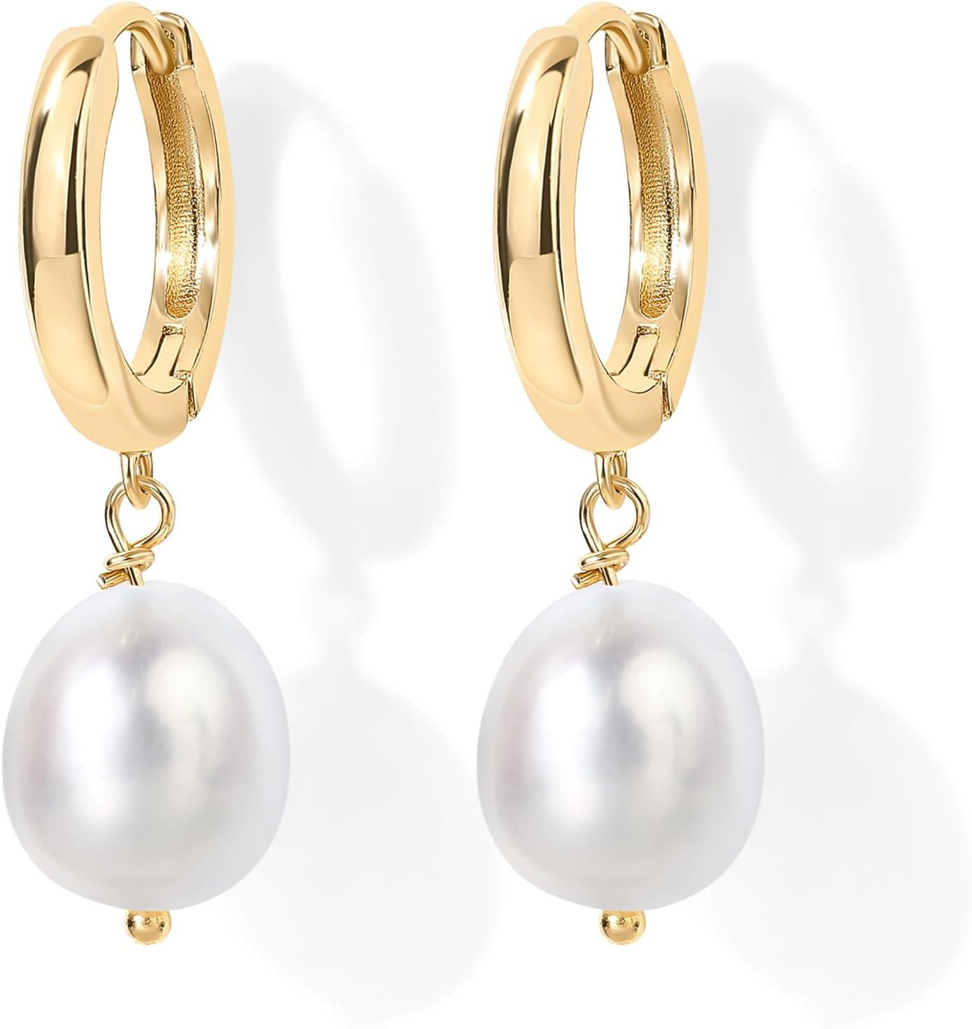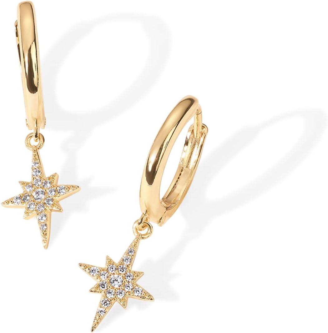 PAVOI 14K Gold Plated S925 Sterling Silver Post Lightweight Drop Dangle Huggie Hoop Earrings for Women | Star, Lock, Pearl, Cross, Lightening, Coin | Dainty Earrings(Yellow Gold)