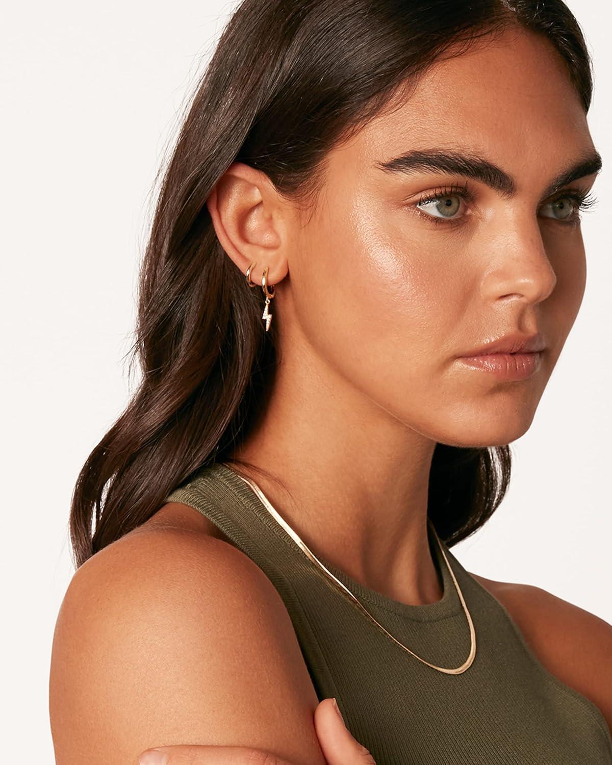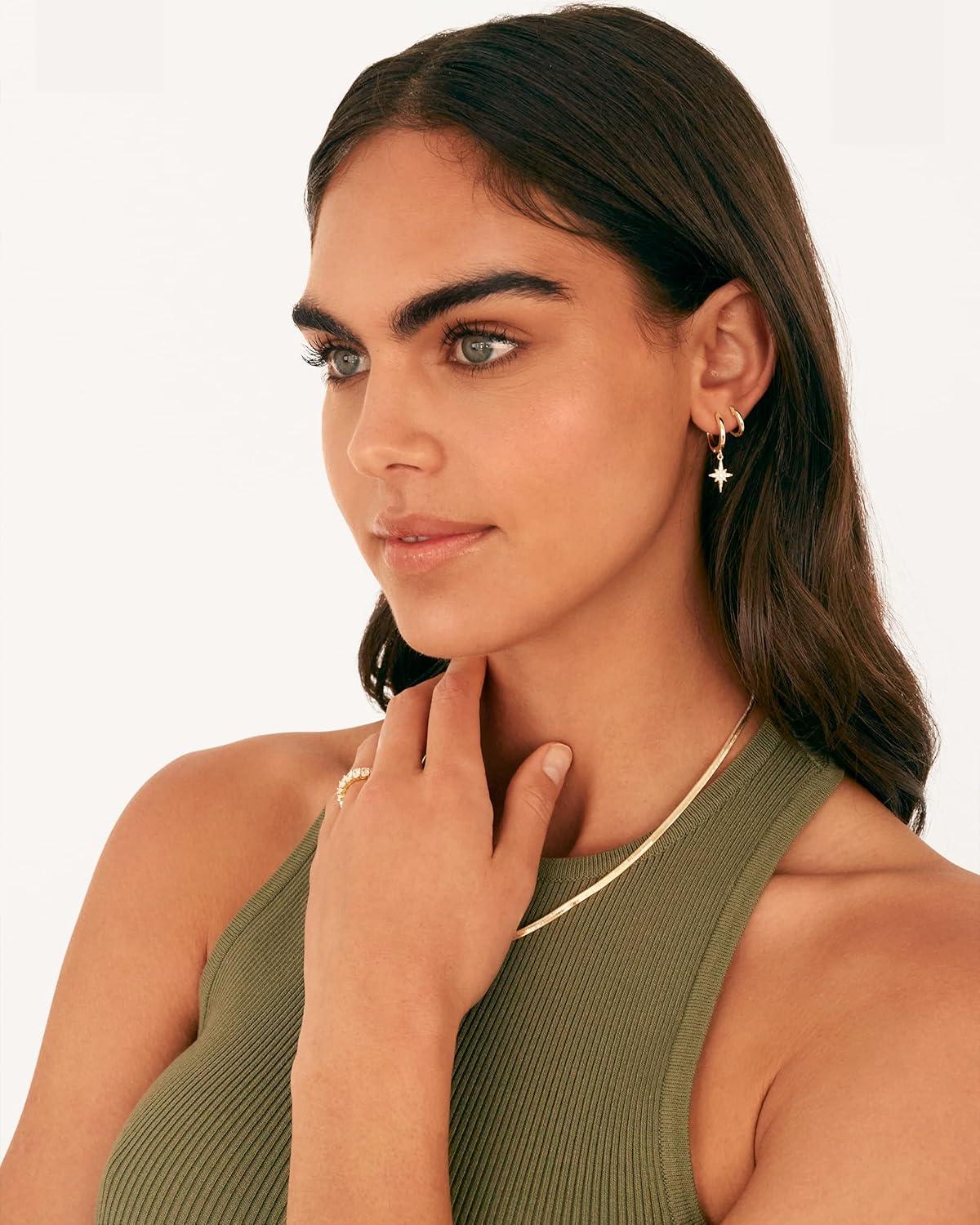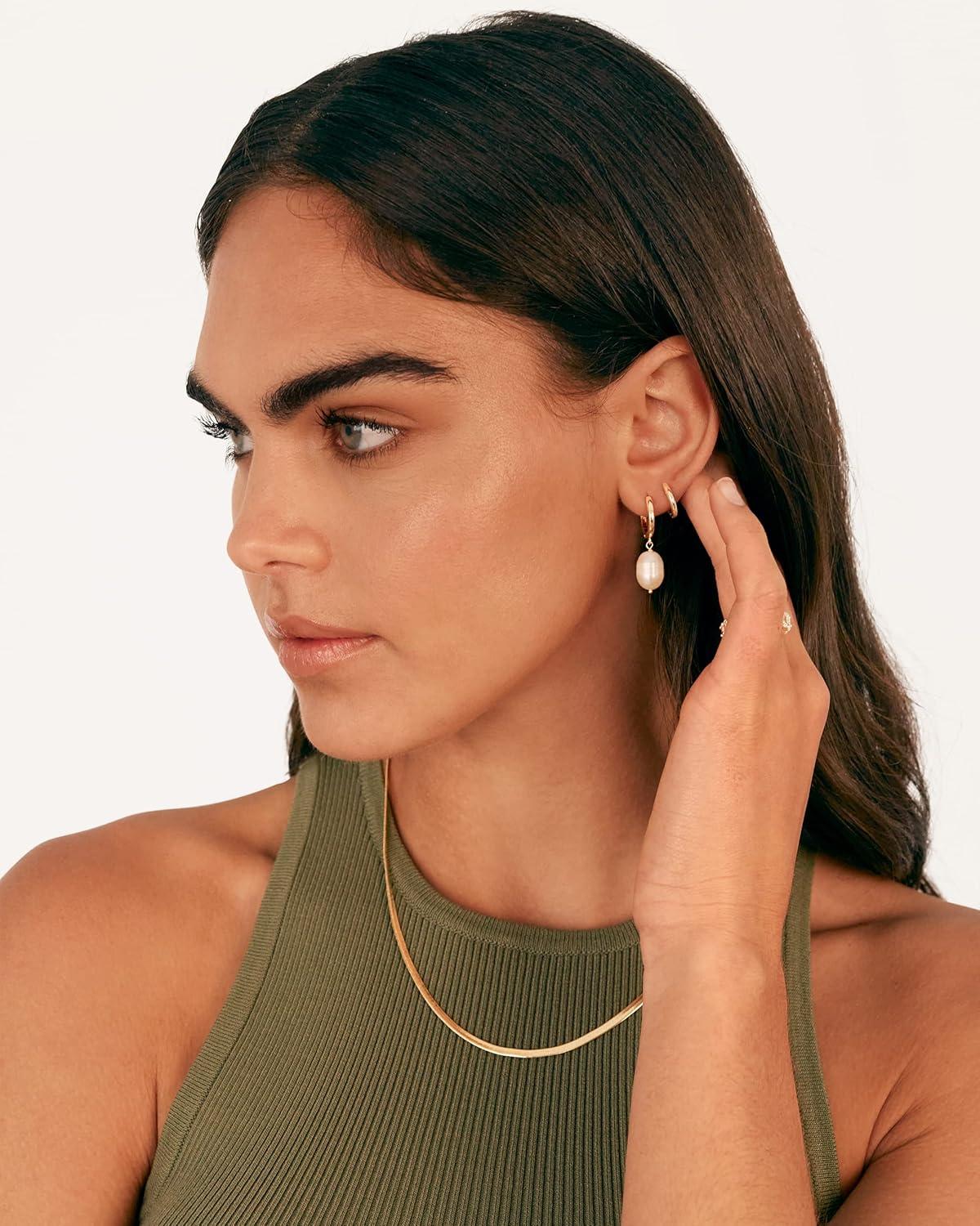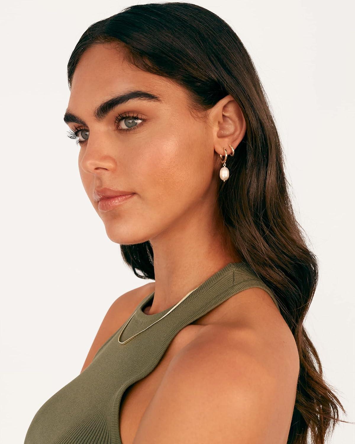 PAVOI 14K Gold Plated S925 Sterling Silver Post Lightweight Drop Dangle Huggie Hoop Earrings for Women | Star, Lock, Pearl, Cross, Lightening, Coin | Dainty Earrings(Yellow Gold)