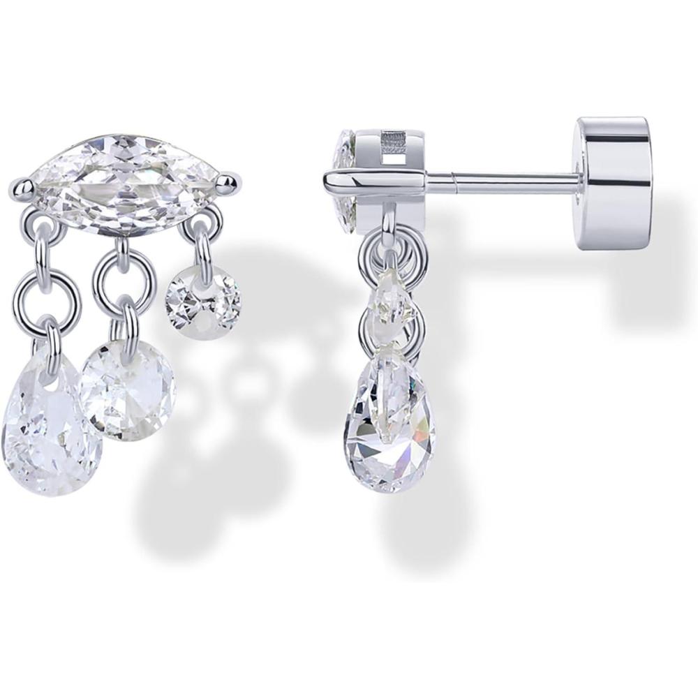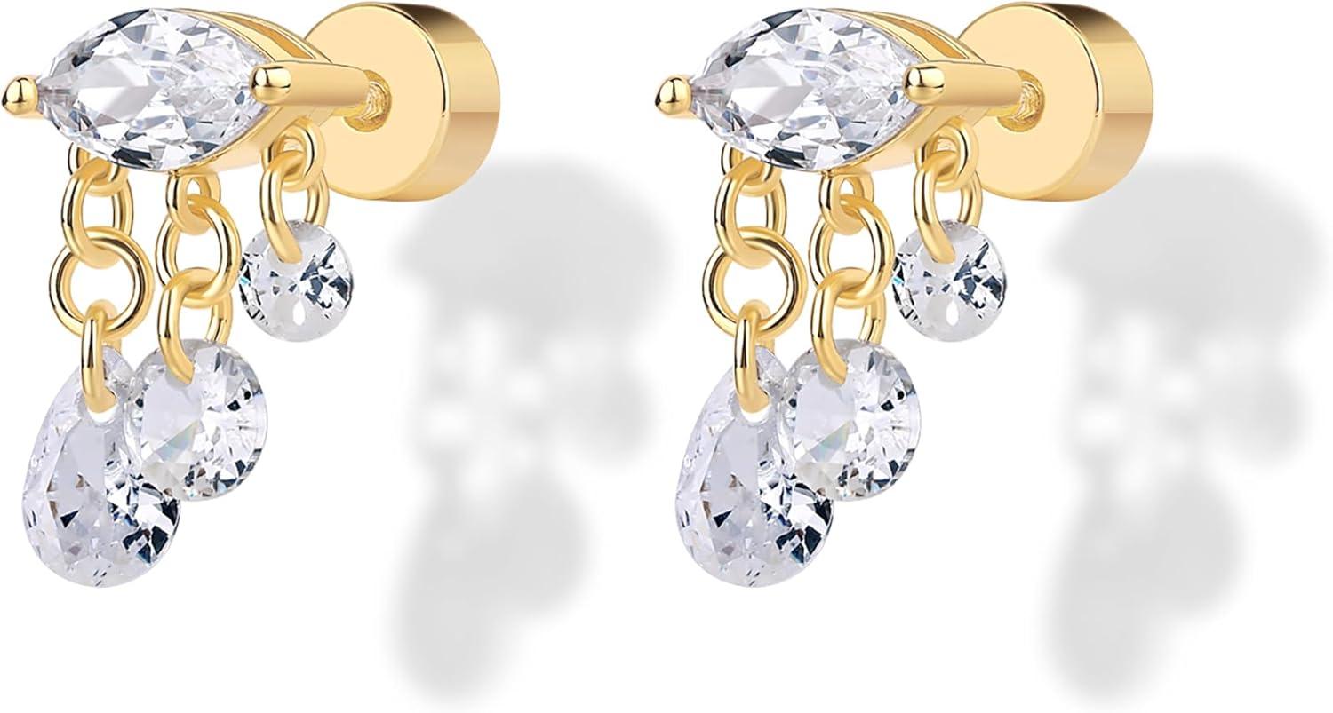 PAVOI 14K Gold Plated Sentimental Dangle Flat Back Earrings for Women | Helix and Cartilage Pearl Cluster Triangle Lotus Pear Marquise Cubic Zirconia Screw Back Earring Pair(Marquise)