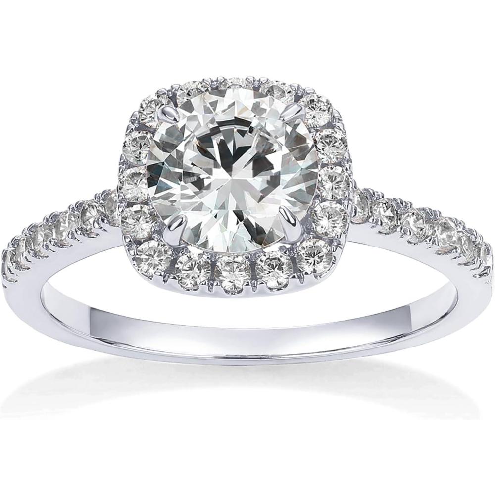 PAVOI 14K Gold Plated Square Halo Engagement Rings | Premium Cubic Zirconia Promise Eternity Ring for Women | Wedding Bands(White Gold)