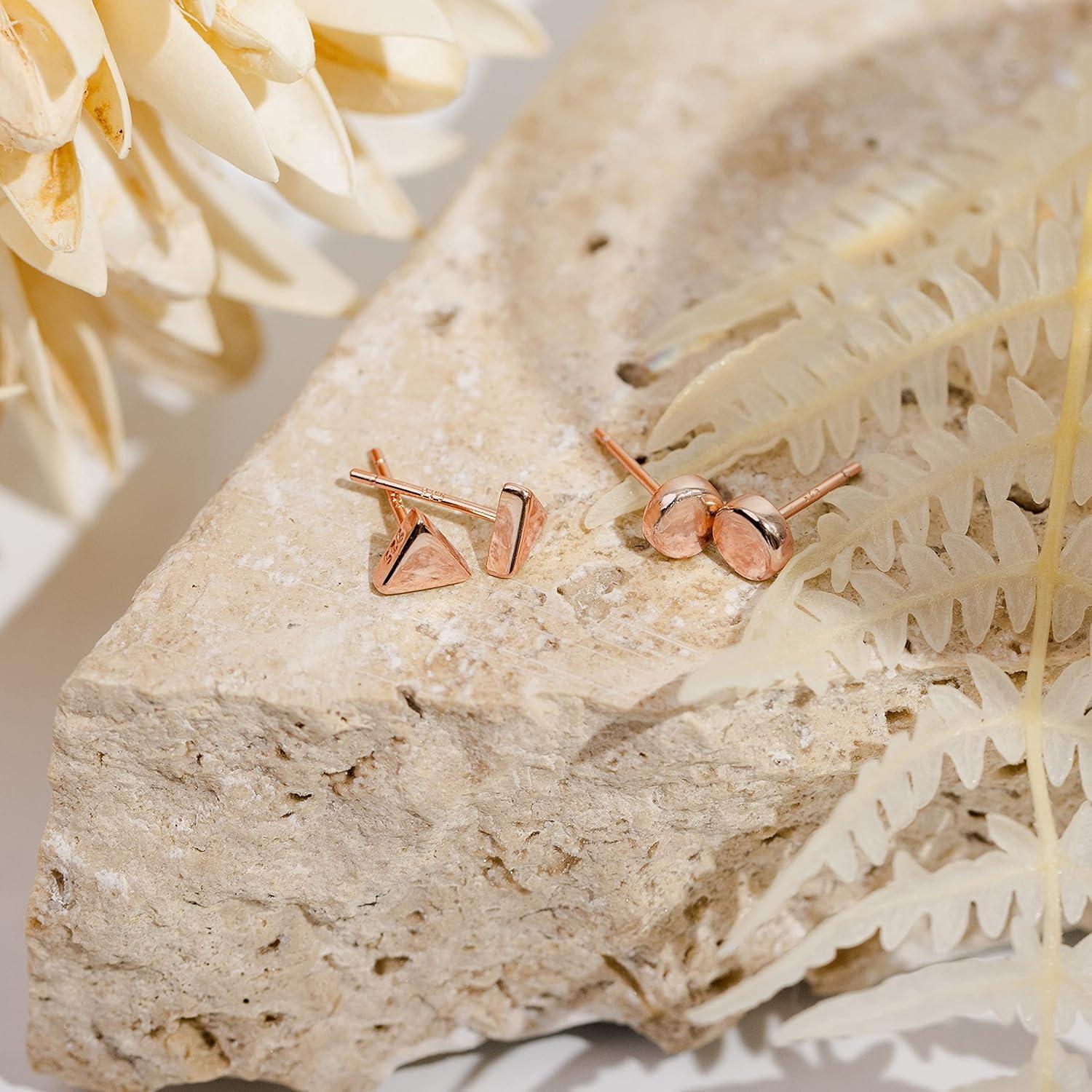 PAVOI 14K Gold Plated Sterling Silver Bar, Dot, Heart, Triangle, Star, Cat | Dainty Earrings for Women(Rose Gold)