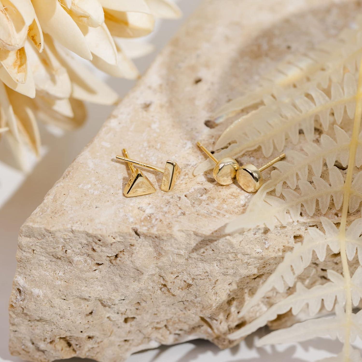 PAVOI 14K Gold Plated Sterling Silver Bar, Dot, Heart, Triangle, Star, Cat | Dainty Earrings for Women(Vermeil – Yellow)