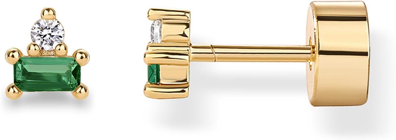 PAVOI 14K Gold Plated Sterling Silver Posts Colored Birthstone Flatback Stud Earrings for Women – Gemstone Cubic Zirconia Screwback Earrings – Dainty Helix Cartilage Piercing Jewelry(May – Emerald)
