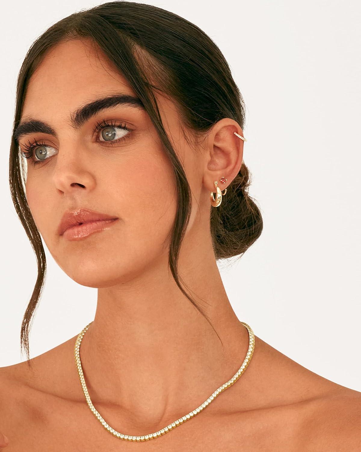 PAVOI 14K Gold Plated Tennis Necklace for Women | 3mm Cubic Zirconia Dainty Gold Tennis Necklaces | Simulated Diamond Tennis Chain in 15″ or 18″ Length | Trendy Fashion Jewelry