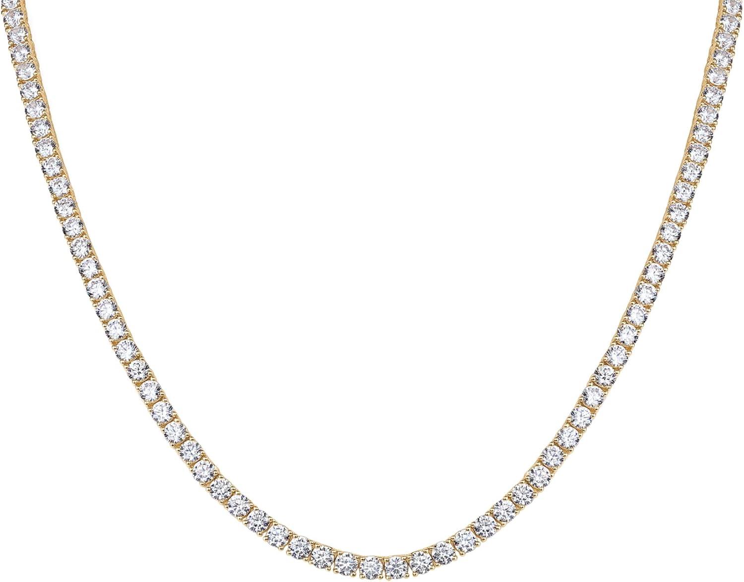PAVOI 14K Gold Plated Tennis Necklace for Women | 3mm Cubic Zirconia Dainty Gold Tennis Necklaces | Simulated Diamond Tennis Chain in 15″ or 18″ Length | Trendy Fashion Jewelry(Yellow Gold)
