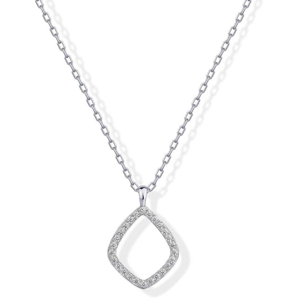 PAVOI 14K Gold Plated Two Toned Mixed Metals Diamond Shaped Dangle Pendant Necklace for Women with Cubic Zirconia | Geometric Necklace(White Gold)