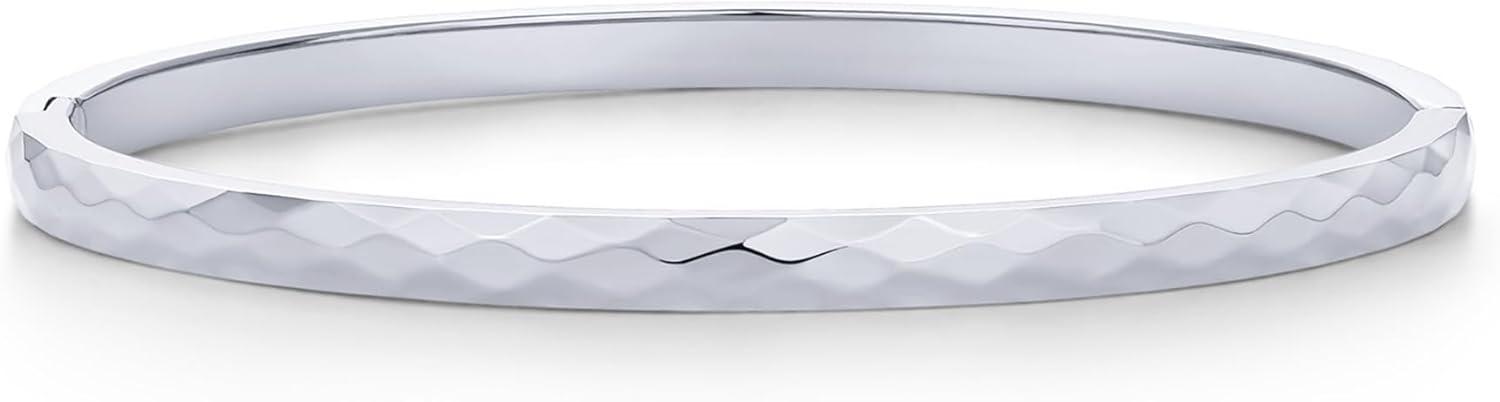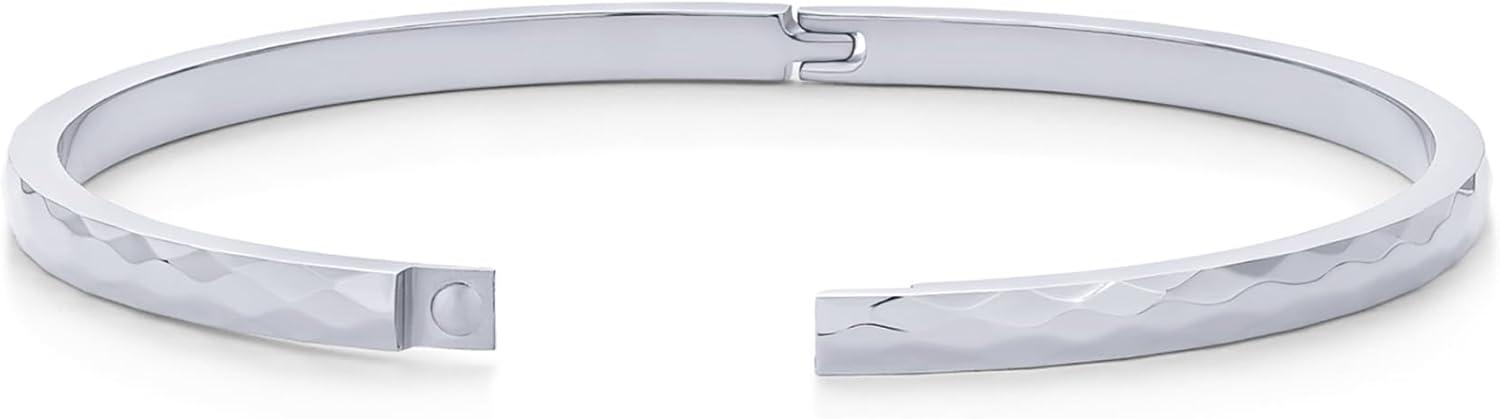 PAVOI 14K Gold Plated Waterproof Bangle Bracelets for Women | Stainless Steel Faceted Hammered Ball Beaded Hinged Bracelet(White Gold)