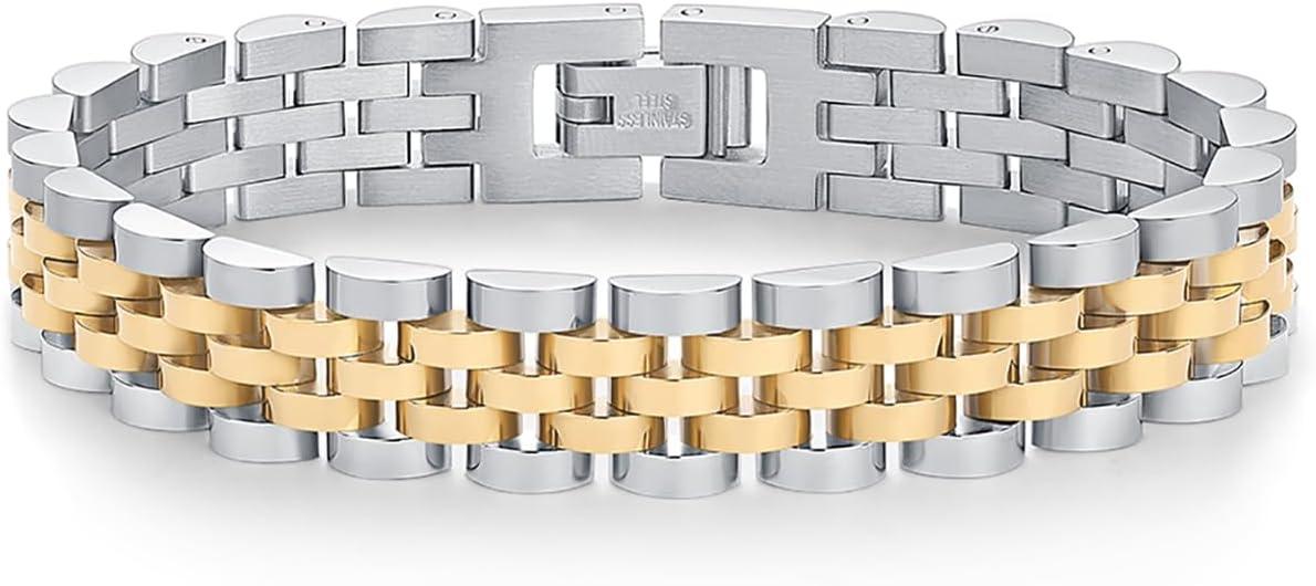 PAVOI 14K Gold Plated Waterproof Watch Strap Chain Bracelet for Women | Two Toned Mixed Metals Stainless Steel Chunky Link Bracelet(White And Yellow Gold)