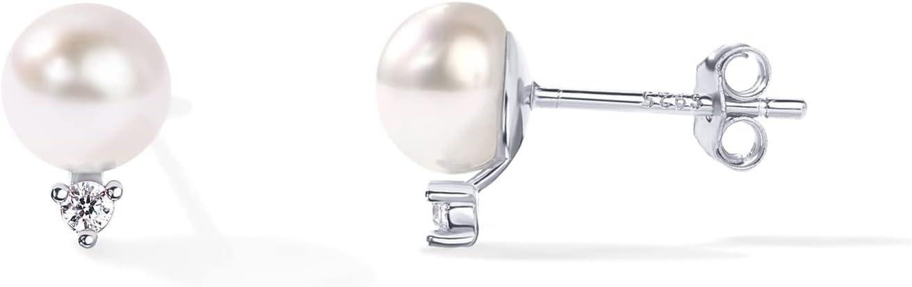 PAVOI 18K Gold Plated 925 Sterling Silver Post Cubic Zirconia | AAA+ Quality Handpicked Freshwater Cultured Stud Button Pearl Earrings(White Gold)