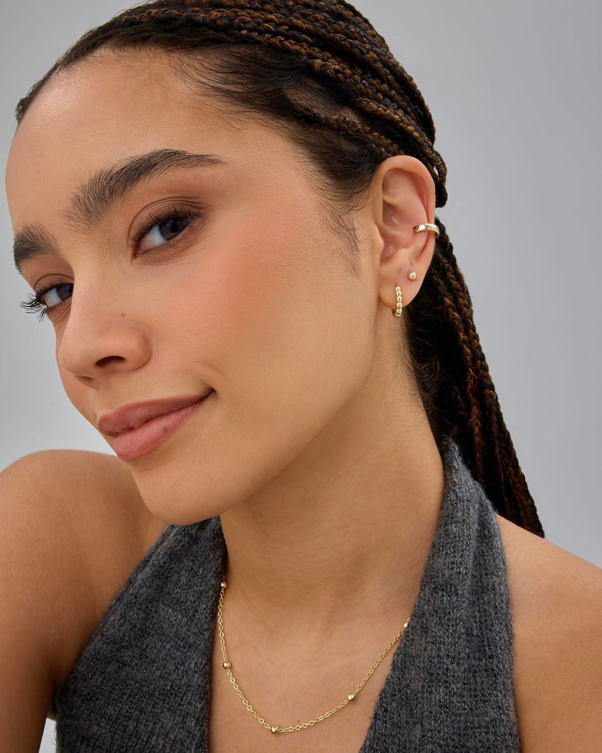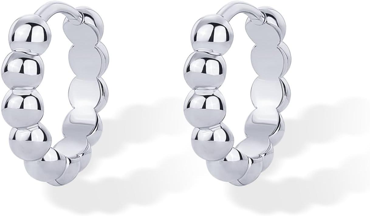 PAVOI 18K Gold Plated 925 Sterling Silver Posts Beaded Huggie Hoop Earrings for Women – Lightweight Gold Hoop Earrings(White Gold)
