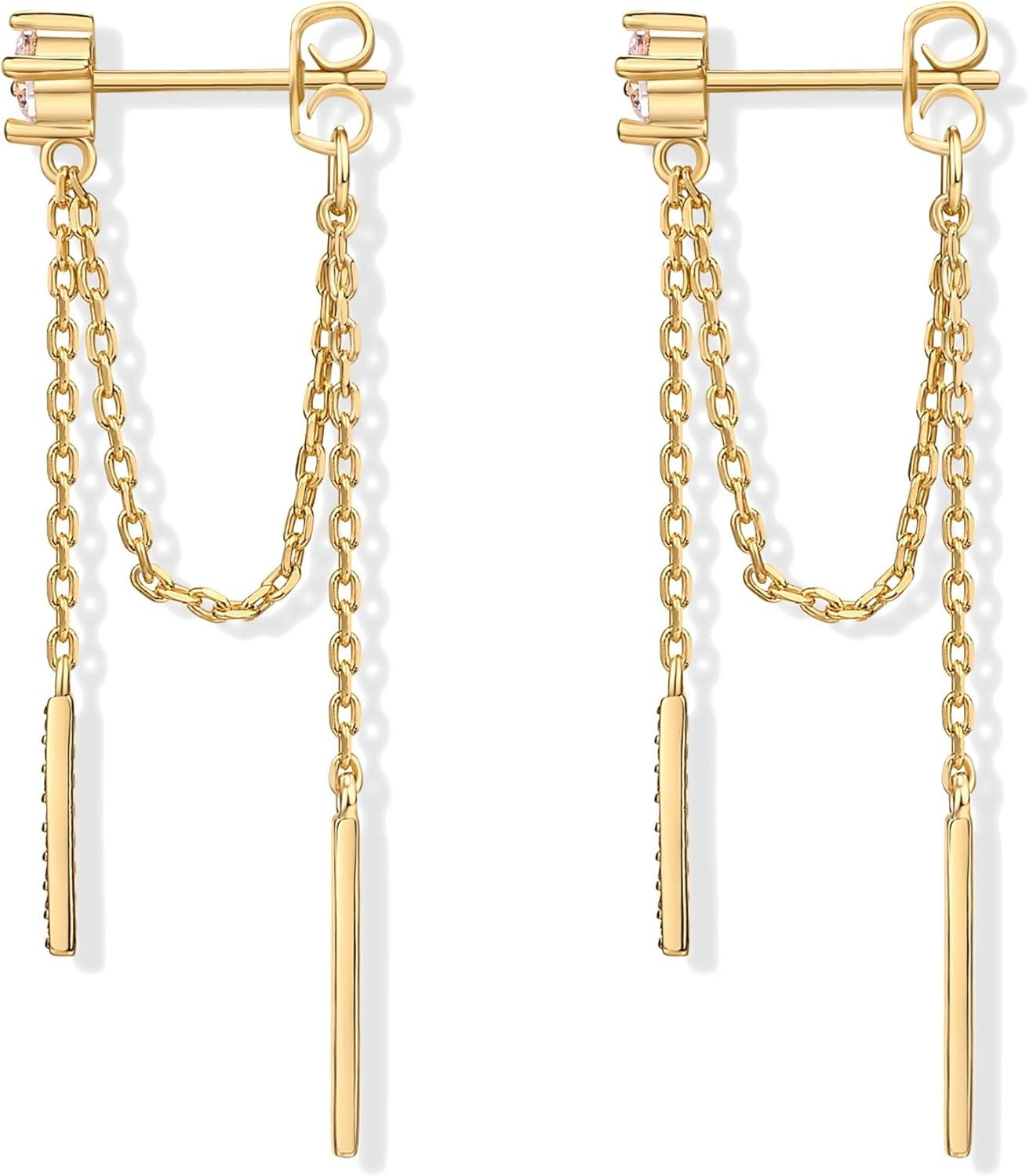 PAVOI 18K Gold Plated 925 Sterling Silver Posts Drop Dangle Chain Earrings for Women | Dangling Chain Studs | Cubic Zirconia Ball Threader Earscapes Earrings(Yellow Gold)
