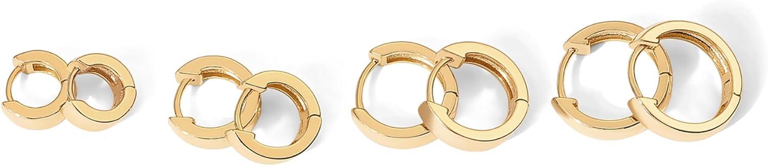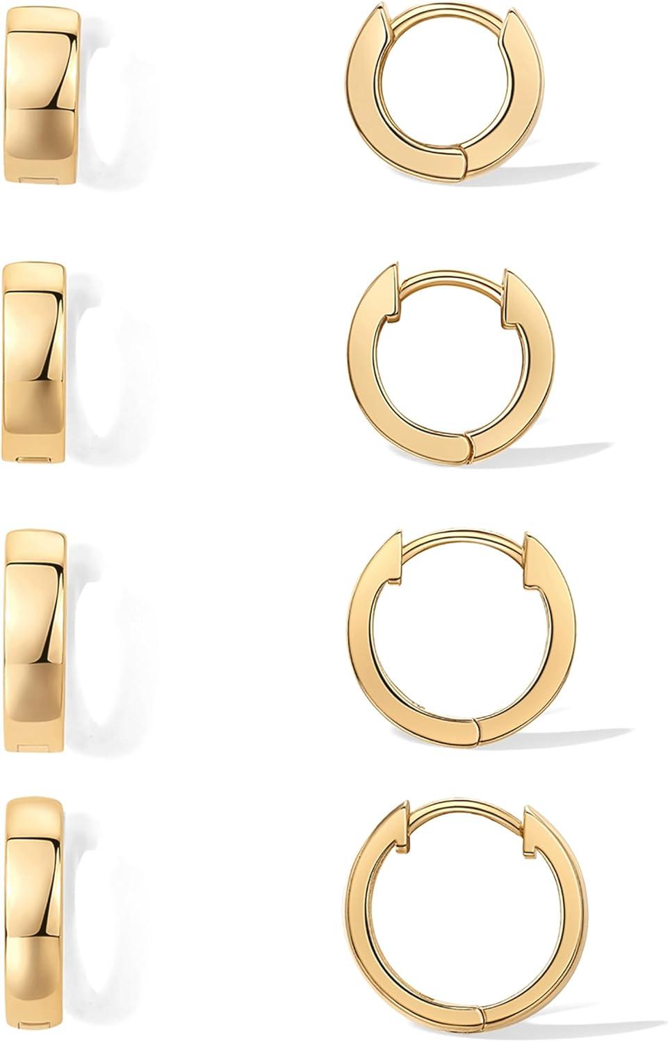 PAVOI 18K Gold Plated 925 Sterling Silver Posts Small Hoop Earrings for Women – Trendy Geometric Plain Chunky Huggie Earscape Piercing Pack – Everyday Gold Hoop Earrings Set(4-Piece Set)