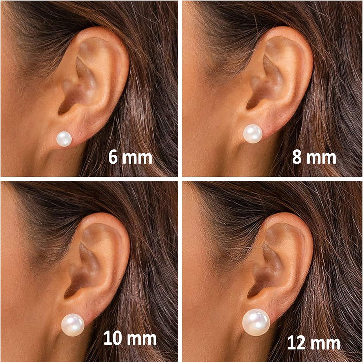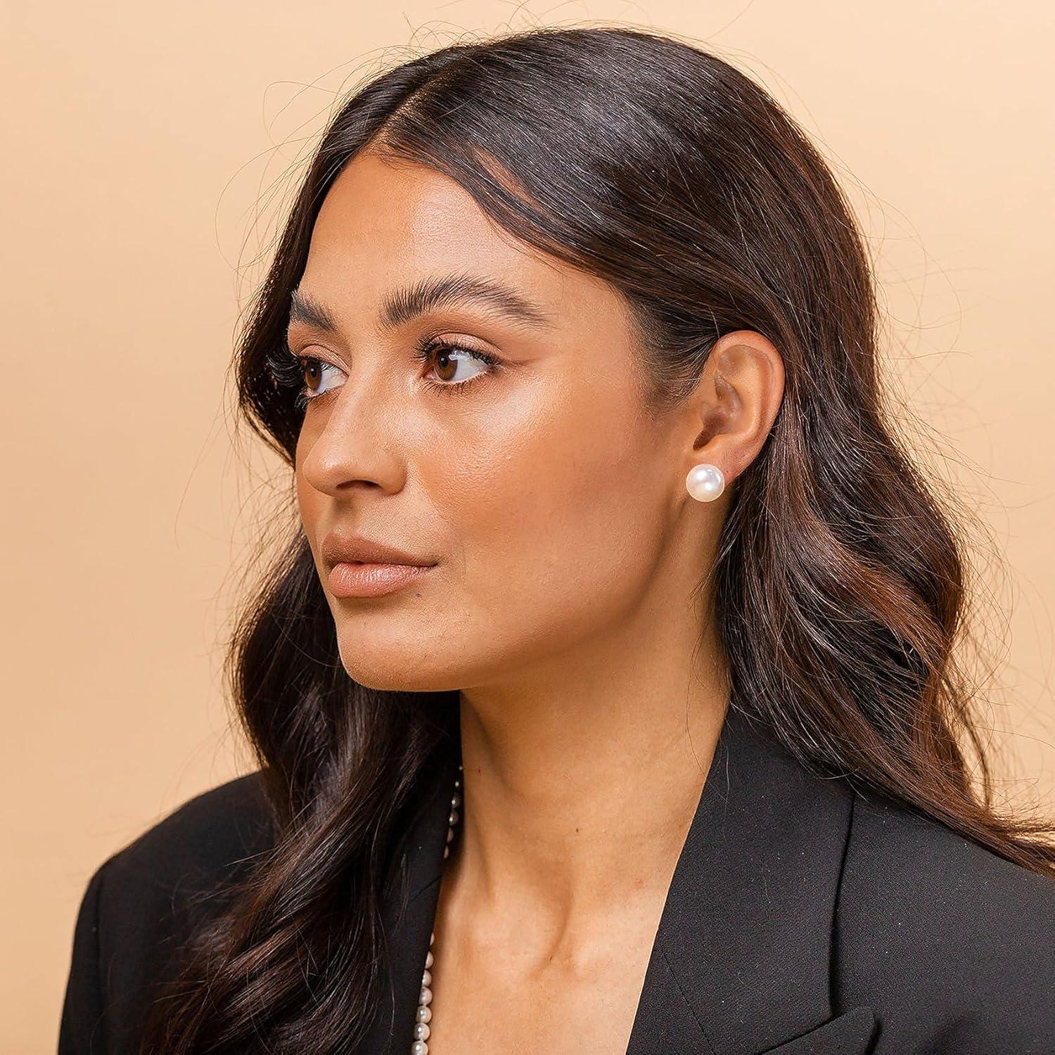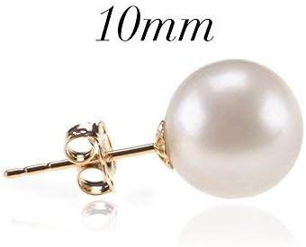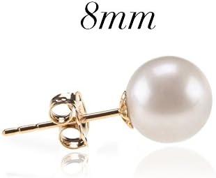 PAVOI 18K Gold Plated 925 Sterling Silver Round Stud White Simulated Shell Pearl Earrings(Yellow Gold)