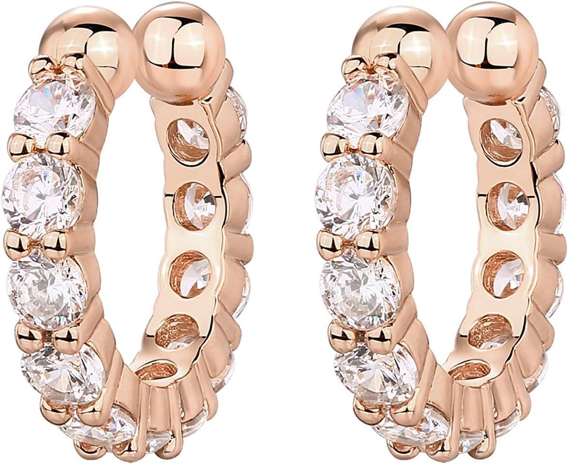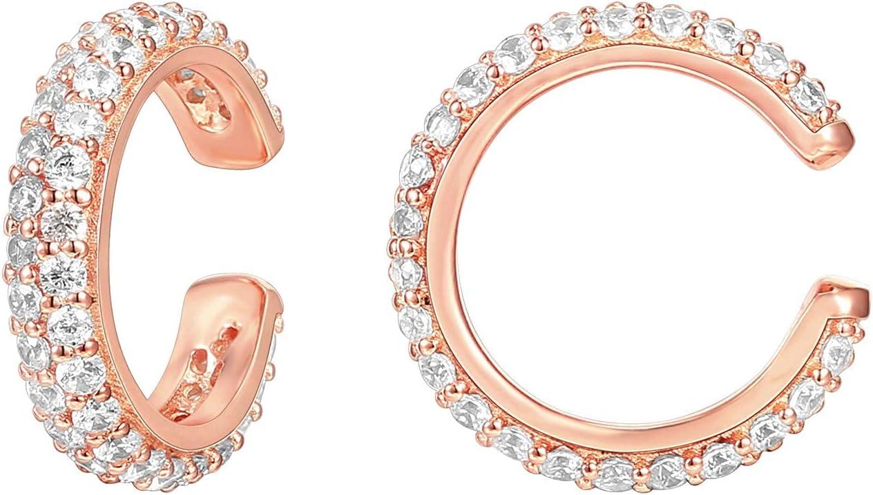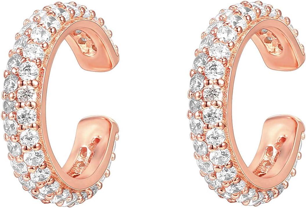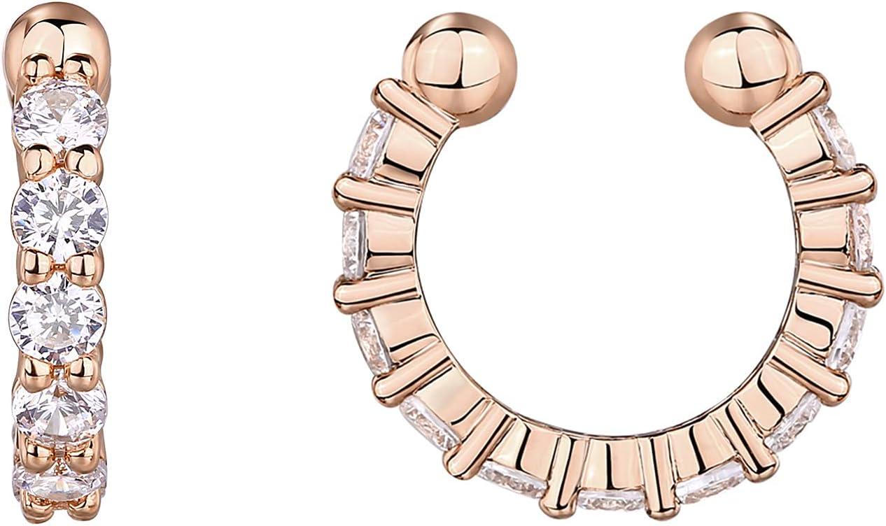 PAVOI 925 Sterling Silver 14K Gold Plated Cubic Zirconia Sparkling Round Huggie Ear Cuff Gold Earrings for Women | Clip On Cartilage(Rose Gold)