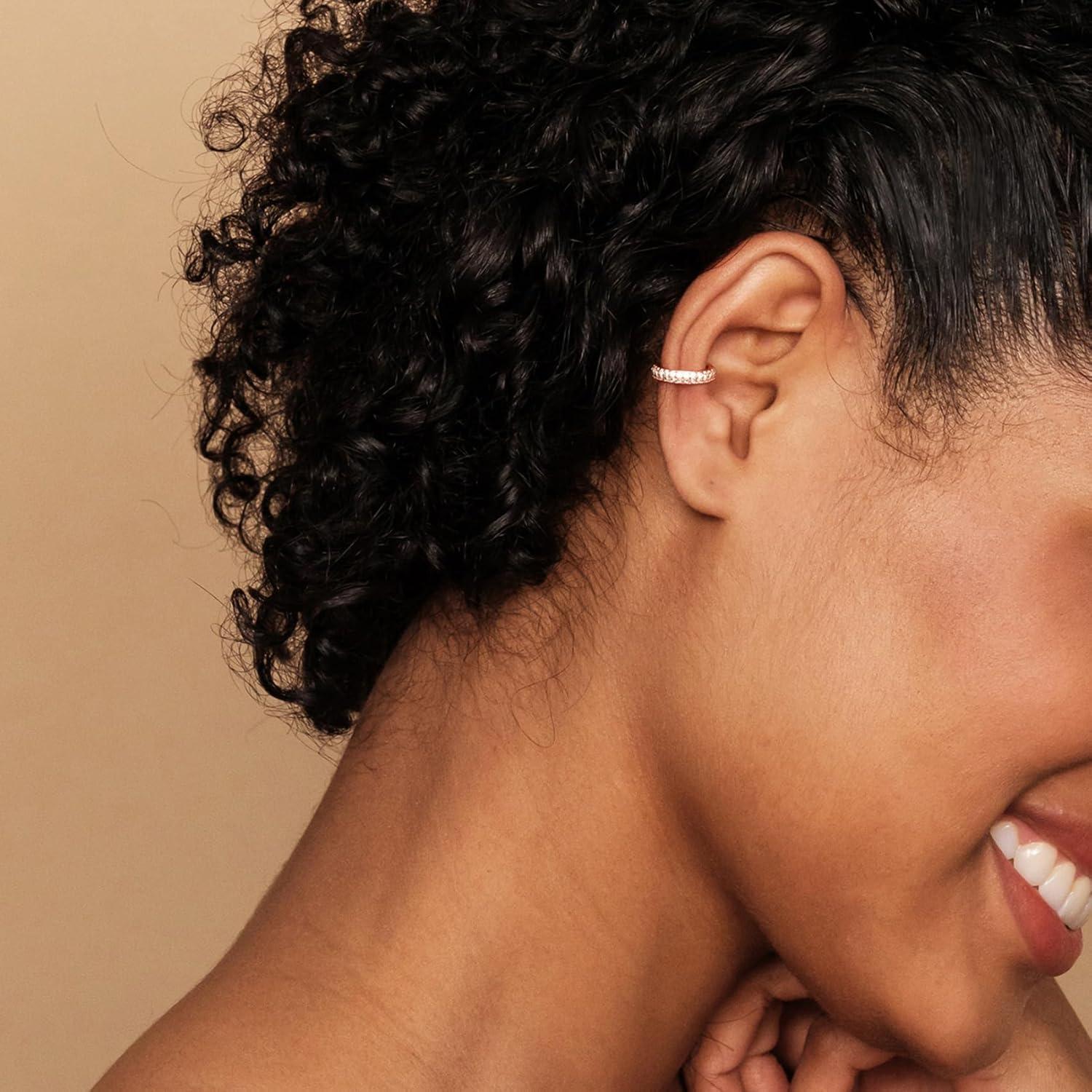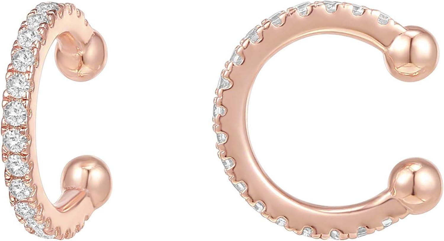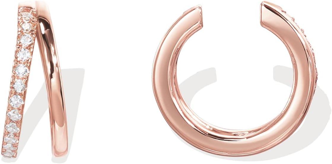 PAVOI 925 Sterling Silver 14K Gold Plated Cubic Zirconia Sparkling Round Huggie Ear Cuff Gold Earrings for Women | Clip On Cartilage(Rose Gold)