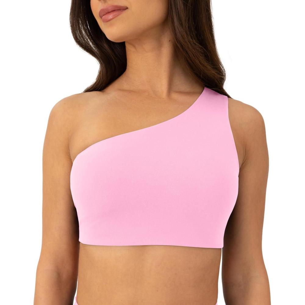PAVOI ACTIVE Asymmetrical Sports One Shoulder Bra for Women – Low Support One Strap Bra Workout Top Removable Pads – FlexFlow(Bubblegum)