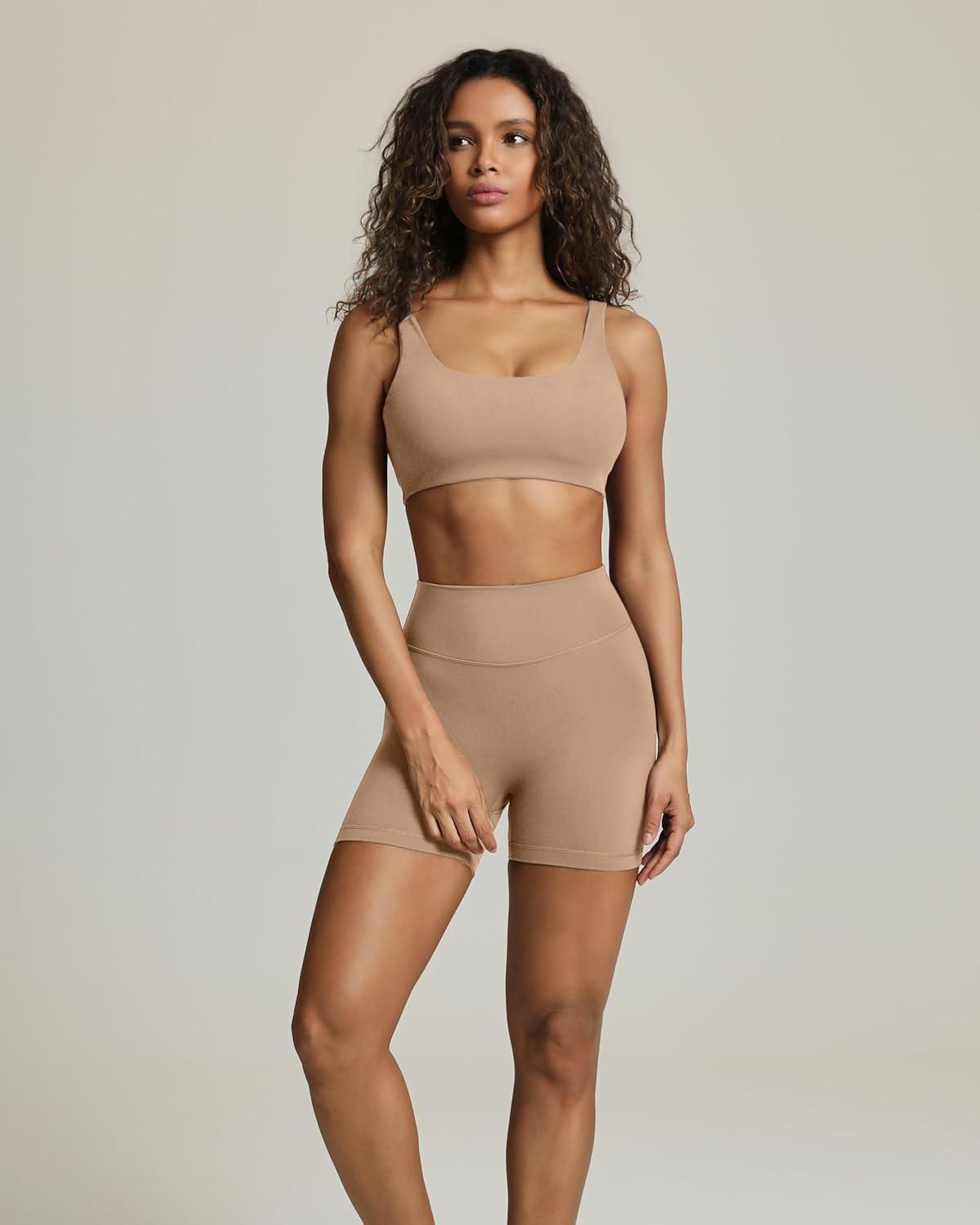 PAVOI ACTIVE Buttery Soft Sports Bras for Women – High Support Low Scoop Neck U Back Padded Yoga Gym Workout Bra – FlexFlow(Sienna)