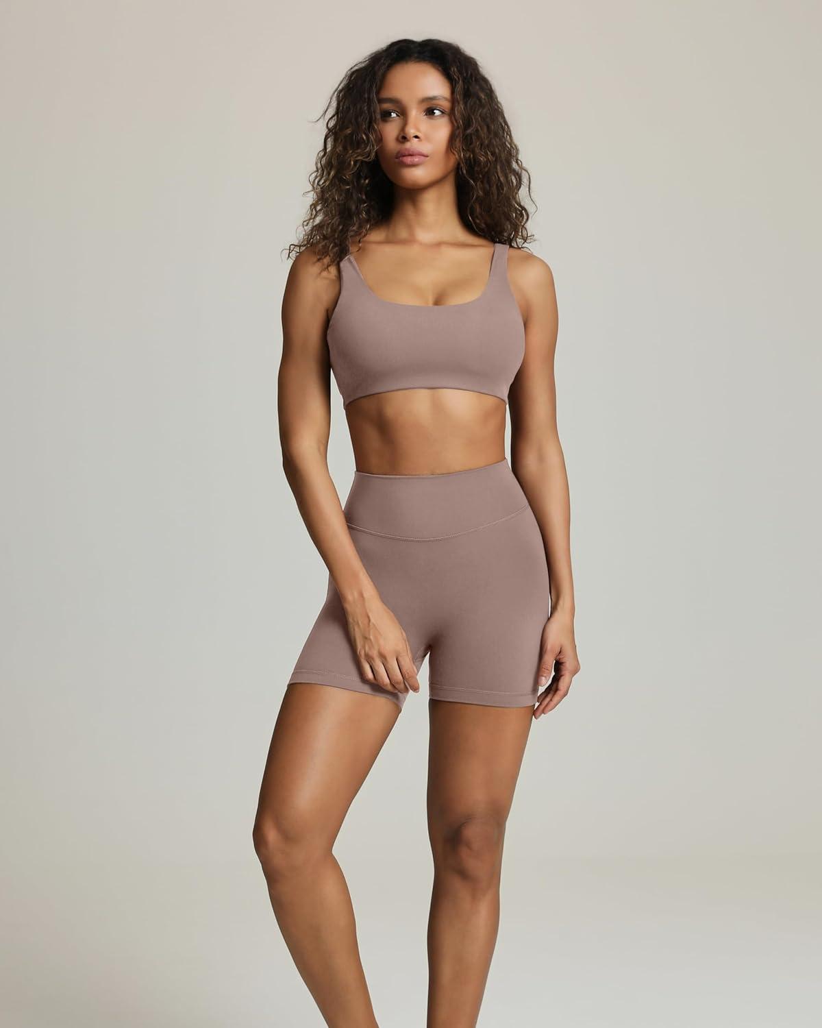 PAVOI ACTIVE Buttery Soft Sports Bras for Women – High Support Low Scoop Neck U Back Padded Yoga Gym Workout Bra – FlexFlow(Teak)