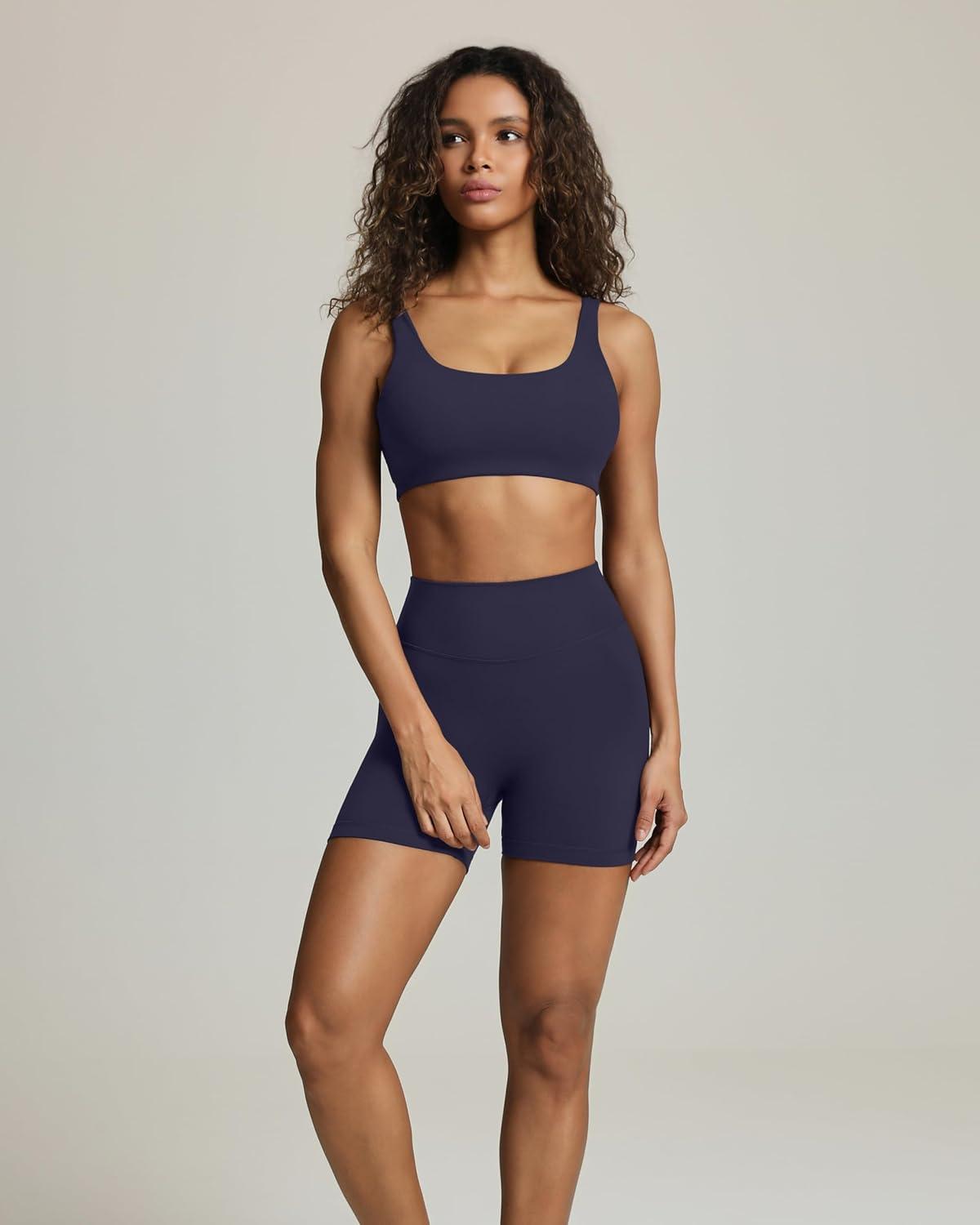 PAVOI ACTIVE Buttery Soft Sports Bras for Women – High Support Low Scoop Neck U Back Padded Yoga Gym Workout Bra – FlexFlow(Twilight)