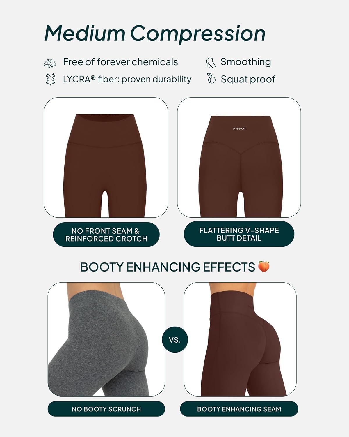 PAVOI ACTIVE Buttery Soft Workout Leggings for Women – High Waisted No Front Seam Gym Leggings Yoga Pants – FlexFlow(Cocoa)
