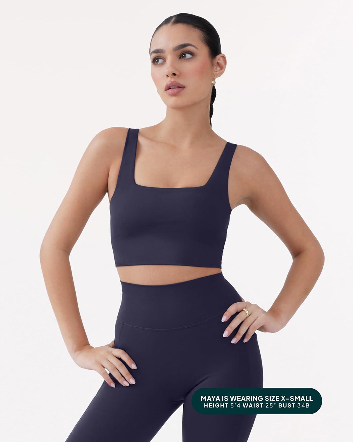 PAVOI ACTIVE Compression Sports Bras for Women | Medium Support Square Neck Longline Workout Bra Removable Pads | HiPerform(Twilight)