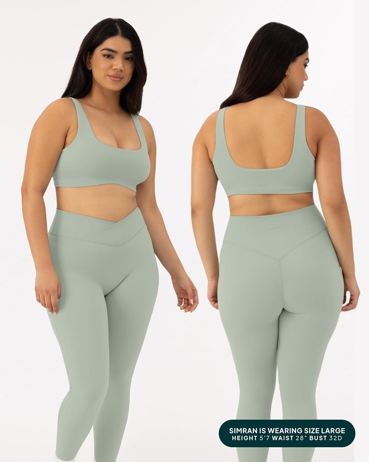 PAVOI ACTIVE Curve Hem Scoop Neck Sports Bra for Women – Medium Support Buttery Soft Low Cut Workout Yoga Bras – FlexFlow(Sage)