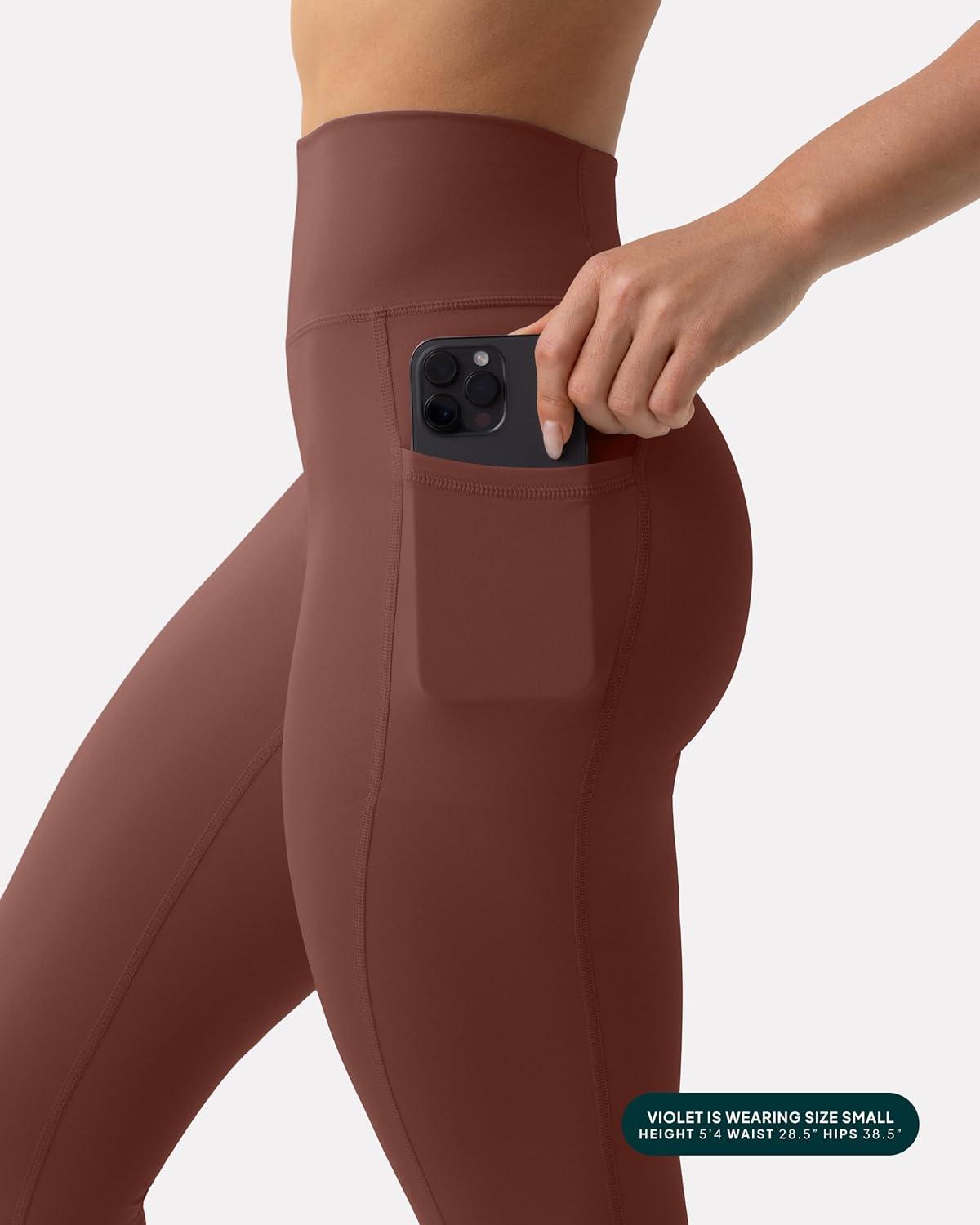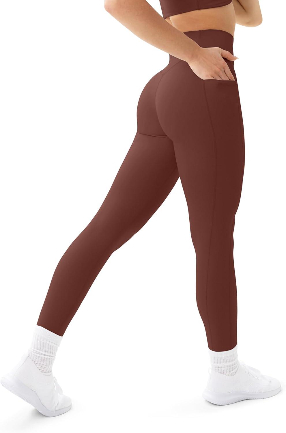PAVOI ACTIVE Leggings with Pockets | Compressive High Waisted Butt Sculpting Women’s Full Length Workout Pants | HiPerform(Chocolate)
