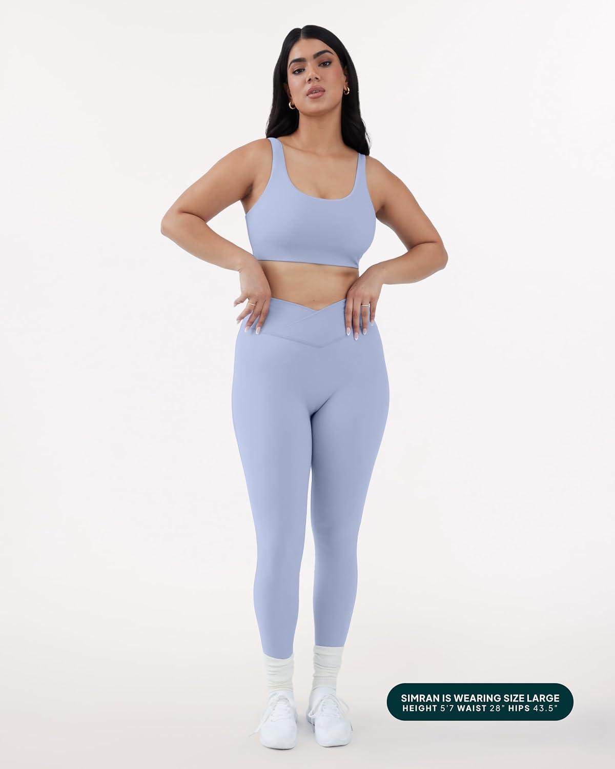 PAVOI ACTIVE Pilates Crossover Leggings for Women | Buttery Soft High Waisted V Cut Cross Waist Workout Yoga Pants | FlexFlow(Seabreeze)