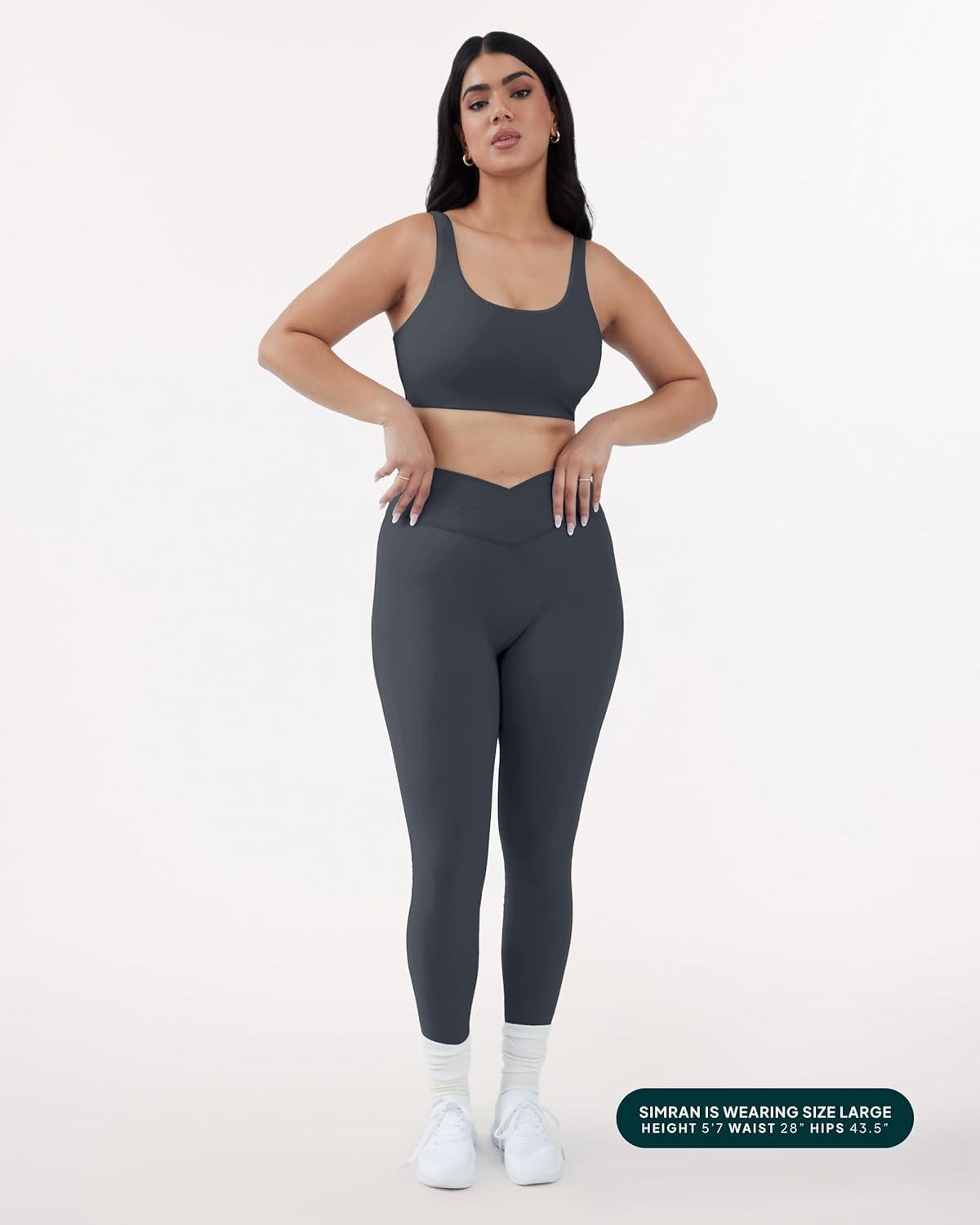 Get ready to turn heads and own your stride in these crossover leggings for women. The flattering V-cut waistband and butt-enhancing scrunch seam will have you feeling your absolute best, whether you're crushing your workout or running errands. Buttery-soft and oh-so-comfy, these leggings are perfect for pilates, yoga, or adding a touch of style to your everyday look.